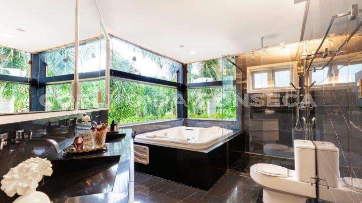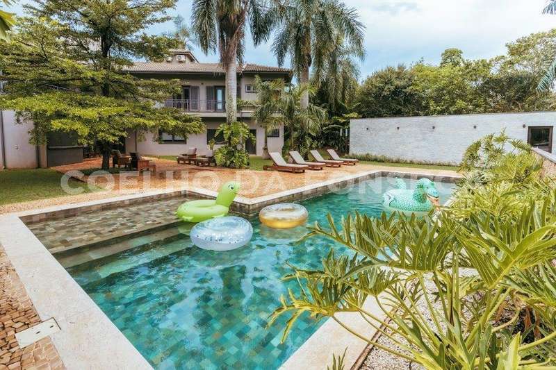 Casa moderna, projeto marina Dubal e paisagismo Flavia Renault. 5 suítes, com varanda e linda vista para o bosque e lazer completo, home theater, brinquedoteca, espaço gourmet e piscina aquecida com pedra Hijal.