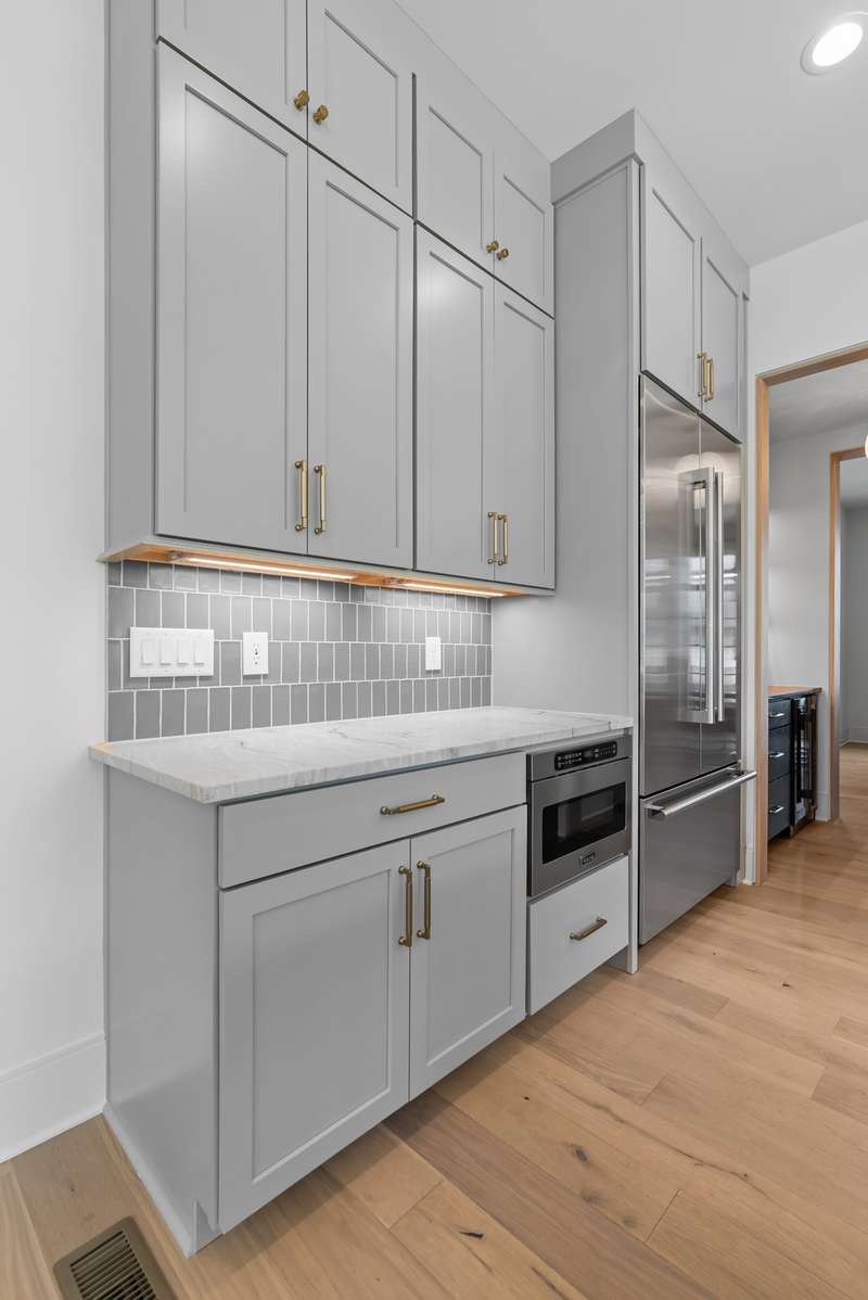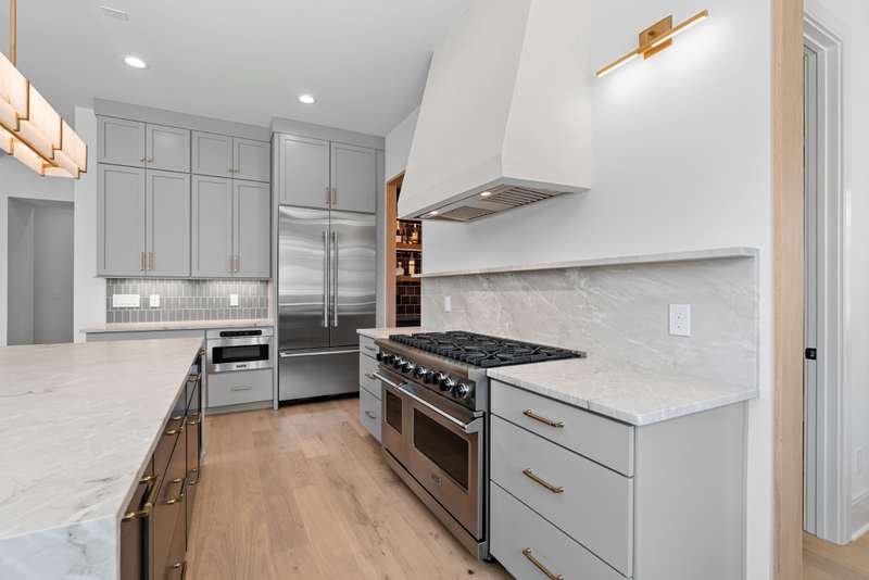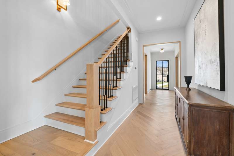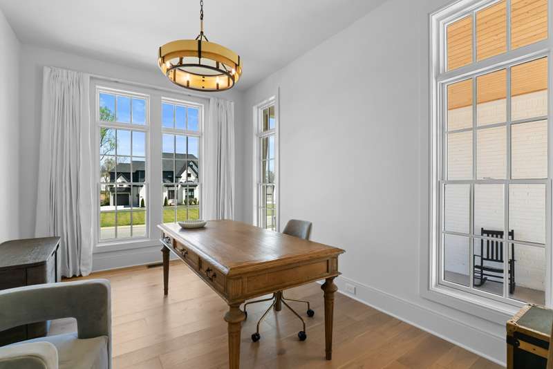 Immediate Occupancy! This exceptional custom-built residence by Ridgemont Homes sits on a generous 0.80-acre lot, offering ample space for a future pool. Thoughtfully designed with luxurious details, the home features wide-plank hardwood flooring throughout--including all bedrooms. The main level showcases both a primary and guest suite, a designer chef's kitchen with a striking quartz waterfall island, and premium Thermador appliances, including an industrial-style gas range and refrigerator. Adjacent to the kitchen, a cozy morning room, family room and a convenient friend's entry add everyday ease. A hallway off the 2-car garage leads past a custom cubby area to a spacious laundry room with upper and lower cabinetry. Outdoors, enjoy a covered porch with a fireplace, plus a patio equipped with a built-in grill and beverage refrigerator--perfect for entertaining. The elegant primary suite boasts a custom ceiling, spa-like bath, and walk-in closet. Upstairs, a large bonus/media room with a bar area connects to another bonus space above the porte-cochere, with direct access to walk-in storage. Additional highlights include an upstairs laundry room and a hallway bookcase with gallery lighting. Each bedroom enjoys access to its own bathroom. Located in the desirable Williamson County School District, this home is zoned for Crockett Elementary, Woodland Middle, and Ravenwood High. Community amenities include a new pool & cabana. Pickleball court is planned for 2025/2026.