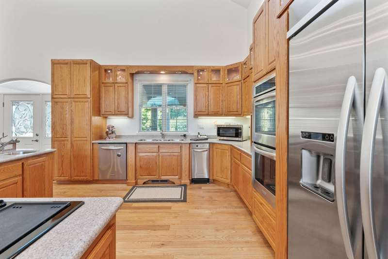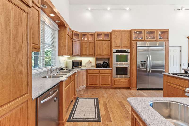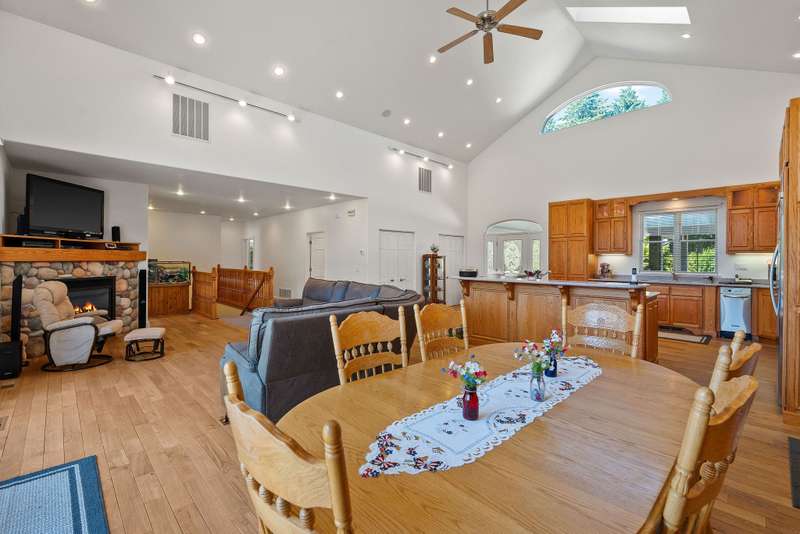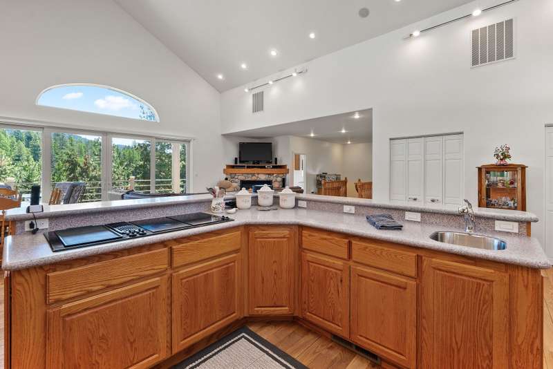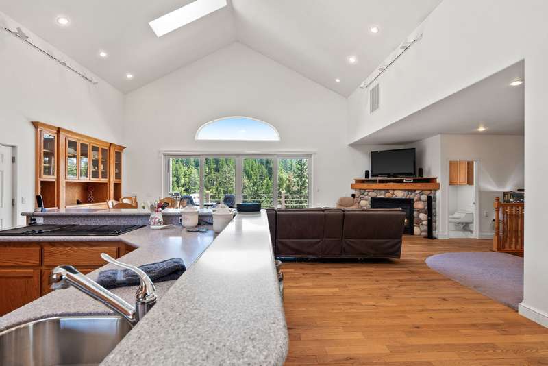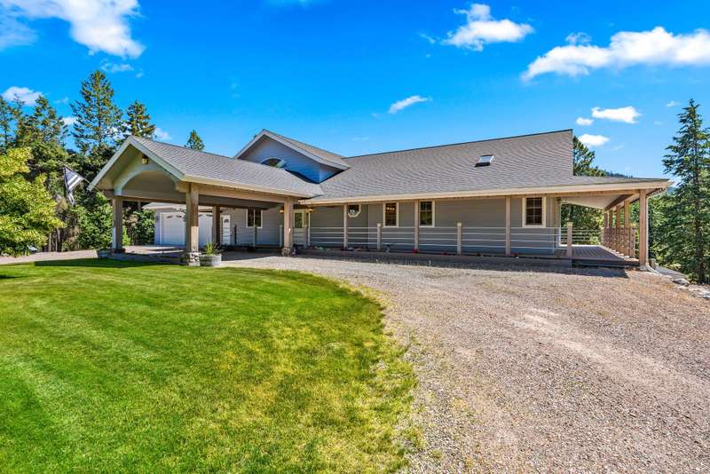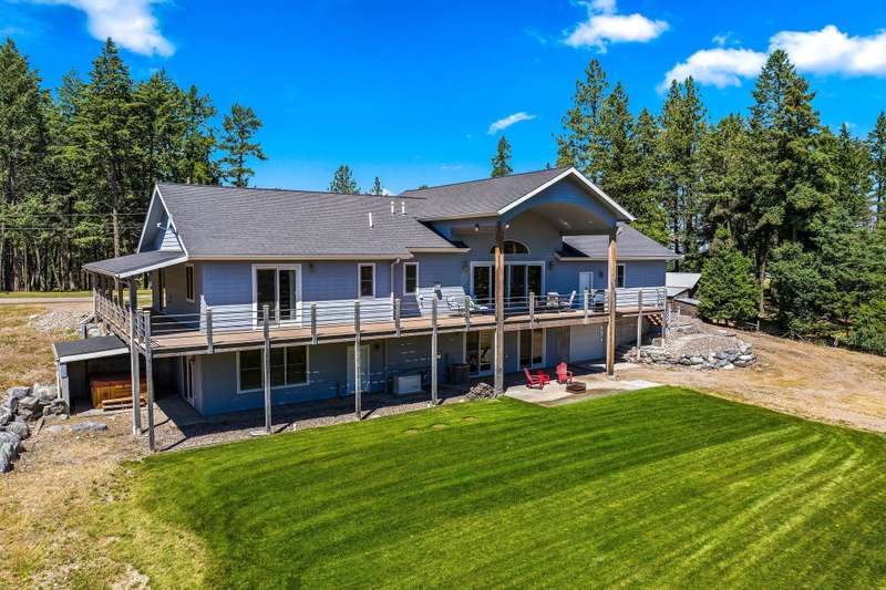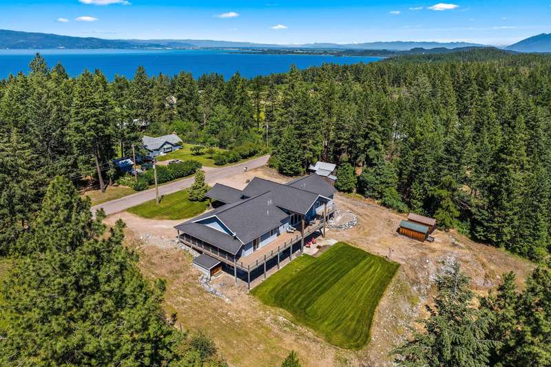 Minutes from Bigfork & Flathead Lake, this 4BD/5BA home offers 4,176 SF of living space on 1.08 acres. Brimming w/ natural light, the home showcases versatile design, making it ideal for multi-generational living. The main level welcomes you w/ an expansive great room w/ soaring ceilings, complemented by oak flooring, & patio doors that open onto a wraparound deck, perfect for outdoor gatherings or quiet evenings. The chef's kitchen features abundant custom built-ins & generous storage throughout. Each bedroom enjoys the luxury of an ensuite bath. Each level offers a gas fireplace & laundry facilities. The lower level includes a kitchenette & a generous entertaining area, ideal as an in-law suite. Amenities include a central vacuum, upstairs A/C, & a whole-house generator, heated main garage w/ a storage closet, & heated lower-level garage/workshop. Outdoors, you'll find a covered hot tub, patio, gas fire pit, 2 storage sheds, & plenty of room to entertain. See Feature Sheet in docs.