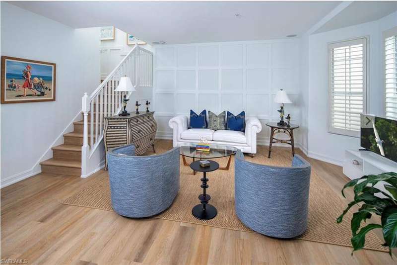 This impeccable villa is ideally situated in the heart of Olde Naples, just steps away from 5th Avenue South, Cambier Park, and Naples' pristine white sandy beach. Villas Ravello was designed to embrace abundant natural light throughout the entire home. The interior has been professionally curated with high-end decor and furnishings. In addition, the villa features a private courtyard complete with a saltwater pool. The first floor encompasses a spacious living area, a well-appointed kitchen, a half bathroom, and a reading/tv nook. The second floor houses three bedrooms and a generously sized laundry room. The master suite is particularly noteworthy, offering two walk-in closets, a large en-suite bathroom, and a luxurious soaking tub. Additional amenities include a one-car garage with a long driveway situated on the south side of the property. The home is fully turnkey, equipped with upscale white hotel-style linens, beach towels, and beach gear, ensuring a seamless and elegant living experience.