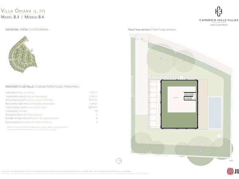 Moradia T4 nova com 277 m2 de área bruta de construção, jardim e piscina privativos, no Caparica Hills Villas, na Costa da Caparica. As unidades do Caparica Hills Villas oferecem garagem privativa, elevador, amplas zonas de lazer e espaços de arrumação. A construção incorpora elementos sustentáveis como painéis de madeira, coberturas ajardinadas e vegetação local, garantindo eficiência energética e conforto durante todo o ano. O empreendimento integra-se num resort completo que inclui o Hotel IHG Crowne Plaza Caparica Lisbon, instalações de bem-estar com spa, fitness club e estúdio de yoga, um campo de golfe de 9 buracos e uma zona comercial com 20 lojas boutique. Nos planos futuros estão previstos um centro desportivo e uma escola. A localização do Caparica Hills Villas combina tranquilidade e conveniência: a 5 minutos do mar, a 15 km do centro de Lisboa (15 minutos de carro) e próximo do aeroporto principal. Para compras diárias, o supermercado encontra-se nas imediações. O Caparica Hills Villas representa uma proposta de valor equilibrada para quem procura um investimento imobiliário ou residência numa das zonas de maior potencial de valorização da Grande Lisboa, conjugando proximidade à capital com a qualidade de vida junto ao mar. Categoria Energética: A #ref:90872