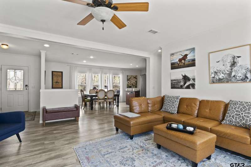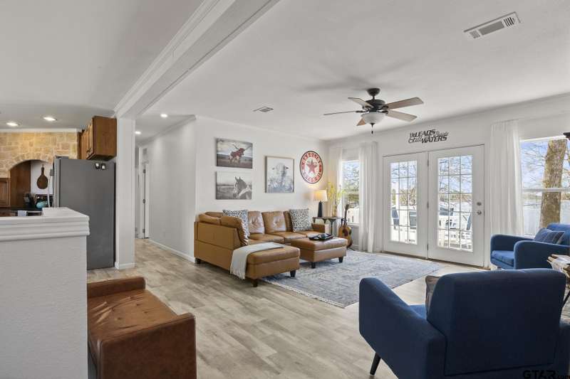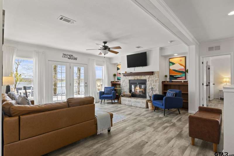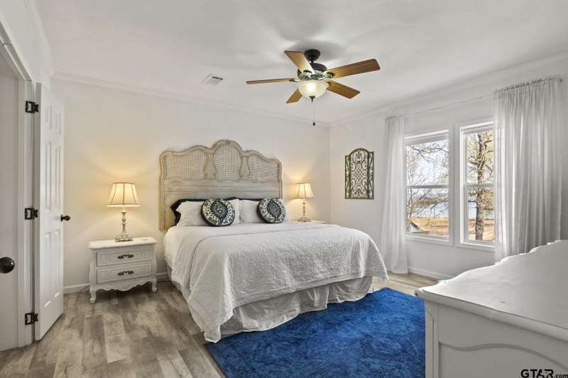 Welcome to this stunning waterfront lake house on Lake Bob Sandlin with 800' retained shoreline, offering panoramic views of the serene waters. With no rules and no restrictions, this property presents fantastic short term rental opportunities when not being personally used. The main house boasts 3 spacious bedrooms, providing ample room for family and guests to relax and unwind, and 2 full bathrooms. Additionally, a charming 1 bedroom 1 bath tiny house on the property offers a cozy retreat for guests seeking a private escape. With its expansive shoreline, this lake house is perfect for water enthusiasts, offering ample space for swimming, boating, and fishing. Enjoy morning coffee on the deck overlooking the water, or gather around one of the many fire pits in the evening to watch the sunset over the lake. The pier is great for fishing, or for those looking to enjoy the beauty of the lake in a peaceful setting. Don't miss the chance to make this picturesque waterfront retreat your own and experience all that lakeside living has to offer.