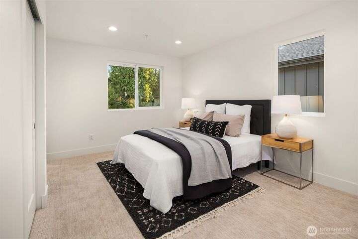 ID Construction Group presents this new construction Kirkland home. Enter into main floor with thoughtfully designed mudroom for ultimate organization. Great room offers large gas fireplace, chef's kitchen with bespoke matte quartz counters, and access to landscaped yard with patio. Private office completes this level. Upstairs, find your family/bonus room, two additional bedrooms & full bath, plus dedicated laundry with included w/d. Expansive primary suite includes ample room for king bed, two walk-in closets & full bath with heated floors. 2-car EV-ready garage. Near to Juanita lakefront parks & McAuliffe Park, plus top-rated Lake Washington School District, & just 10 min to Totem Lake Village.