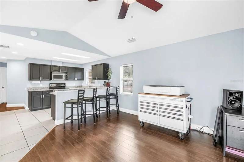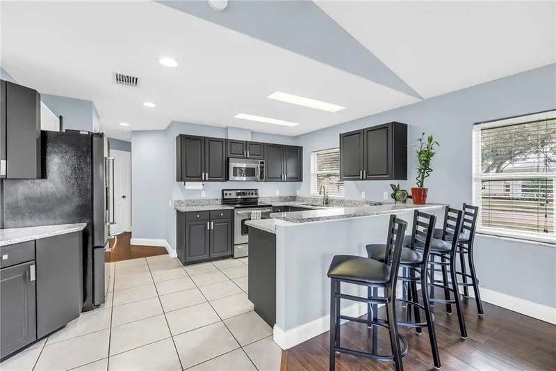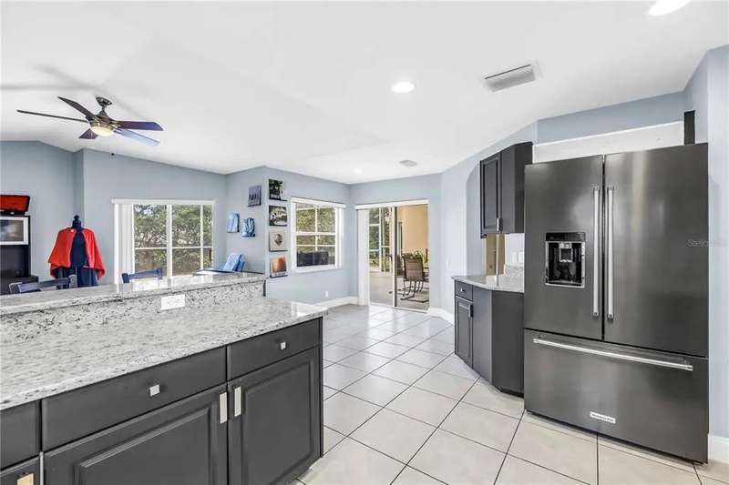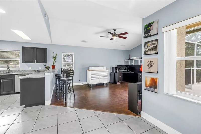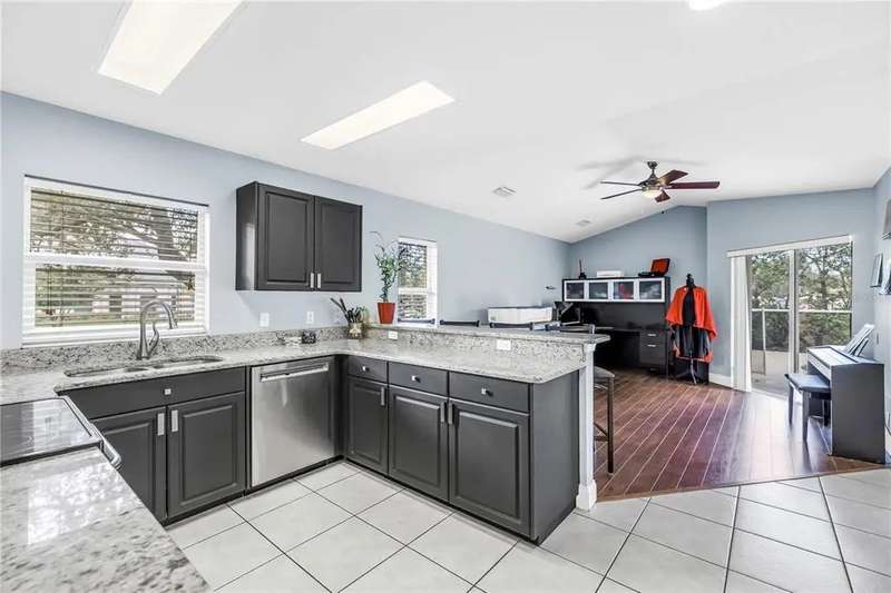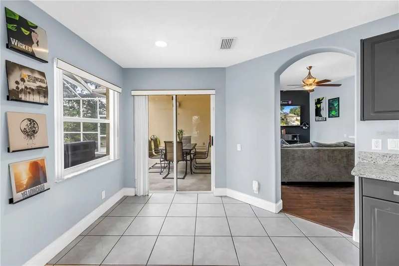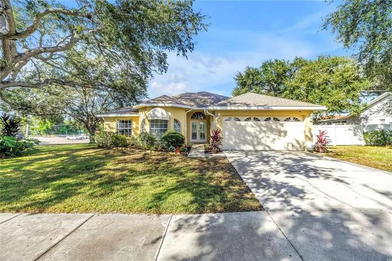 Welcome to this beautifully maintained 3-bedroom, 2-bathroom, 2-car garage pool home in desirable Dunedin. Built in 2001 with solid block construction, this home sits gracefully beneath the shade of mature oak trees on a spacious 120’ x 110’ corner lot. As you arrive, you’ll appreciate the home’s curb appeal, enhanced by thoughtful landscaping and ample yard space. Step through the French front doors into the main living area, where elevated ceilings, engineered hardwood floors, and an abundance of natural light flowing through the open-concept design create a warm, inviting atmosphere. The split floor plan offers privacy and functionality. The primary suite sets a spacious tone with its vaulted ceiling, generous walk-in closet, private lanai access, and updated ensuite bath featuring a walk-in shower. Just across the home, two comfortable guest bedrooms and a guest bath provide a relaxing retreat for family or visitors. Continue through to the heart of the home, the kitchen, recently refreshed with painted cabinetry, granite countertops, stainless steel appliances, and a convenient breakfast bar, perfect for morning coffee or casual dining. Adjacent to the kitchen, the flexible dining area and second living space offer versatility for entertaining, working from home, or relaxing with family. Standout feature is the accessibility to the enclosed salt water pool area from the living and dining areas. The pool was resurfaced in 2021, and the expansive side yard offers a blank canvas to create your own outdoor oasis or garden retreat. Additional updates include a new roof (2019), HVAC (2021), Vivint smart security system with smoke detectors, gutter covers and drainage upgrades. While conveniently located offering quick access to shops, dining, and entertainment. Just minutes from Downtown Dunedin, Honeymoon Island’s pristine beaches, and local piers and marinas, this home truly captures the best of the Dunedin lifestyle.