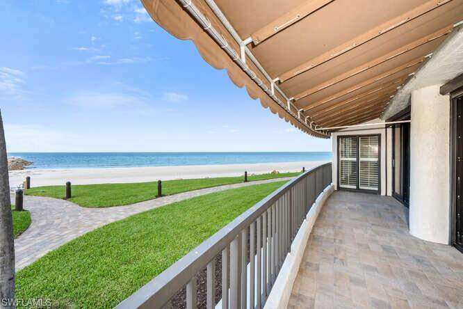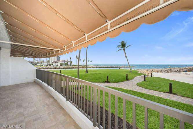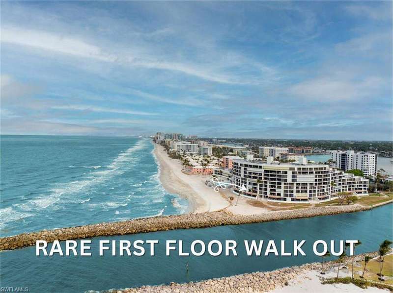 WATCH EVERY BOAT COMING OR GOING FROM VENETIAN BAY AND MOORINGS BAY; FROM YOUR LANAI! This unique condo directly faces Doctors Pass and the Gulf. Incredible views, action, and sunsets await you at the iconic Admiralty Point. First floor access with no stairs is a huge advantage. This two bedroom 2.5 bath home awaits your design ideas. The living room, kitchen and primary suite all share the gulf/pass awesome view. No water damage from the last storm. Under building parking and storage conveniently located down stairs. Make this place your Naples hideaway and enjoy a lifetime of sunsets.