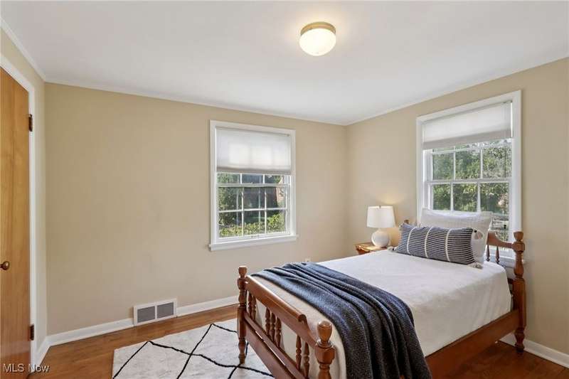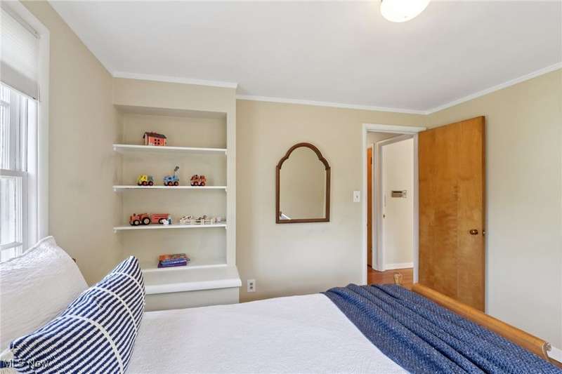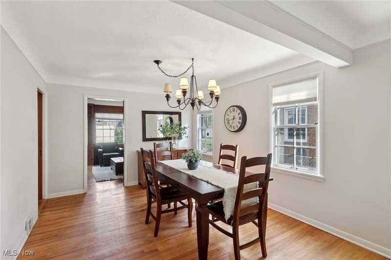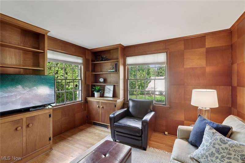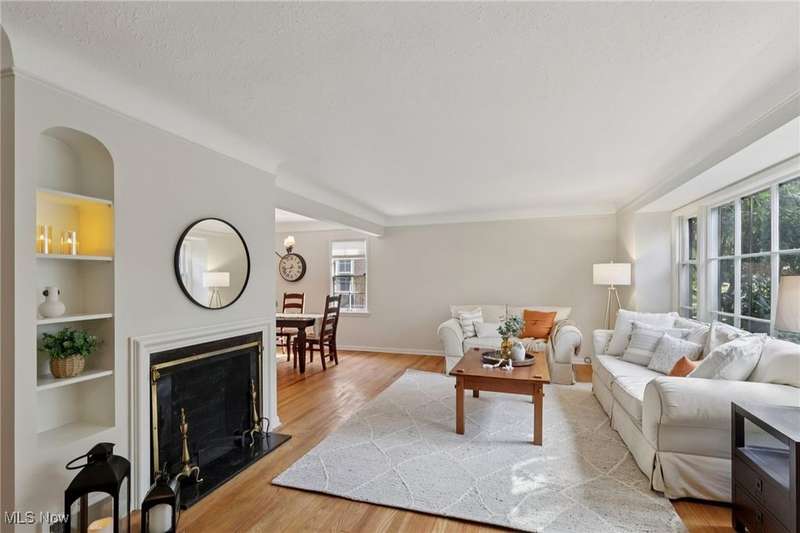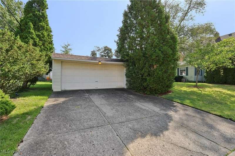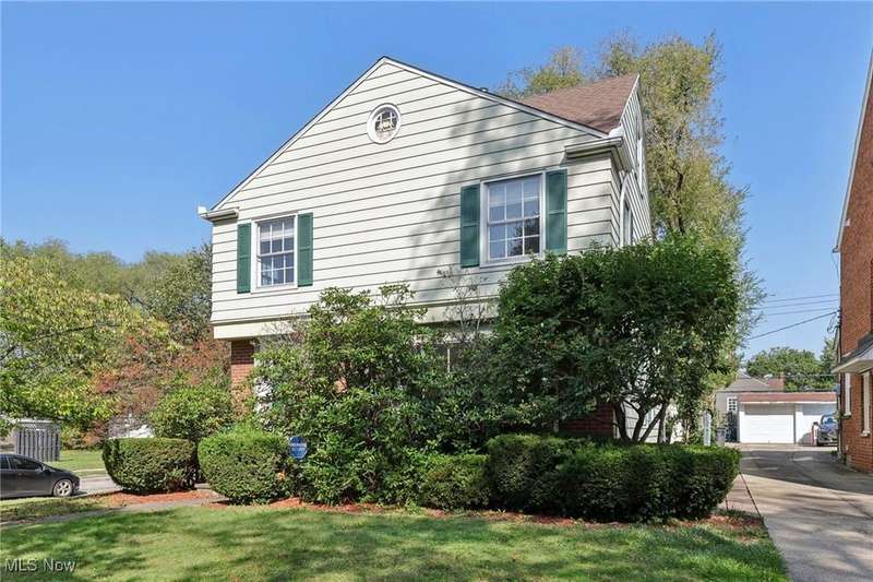 This beautifully maintained 3-bedroom, 1.5-bath colonial blends classic Shaker Heights character with warm, inviting spaces. Gorgeous oak hardwood floors flow throughout the home, adding to its charm and elegance. The spacious living room features a decorative fireplace, built-in shelving, and a large picture window that fills the space with natural light. An adjacent formal dining room is ideal for gatherings, while the cozy den?complete with rich wood paneling and built-in bookcases?offers the perfect spot for a home office or reading room. The kitchen is equipped with stainless steel appliances, ample cabinetry, and a bright dining nook for casual meals. Upstairs, you'll find three comfortable bedrooms and a full bath. The primary bedroom includes access to a private porch overlooking the backyard, and the second bedroom features built-in shelving for extra storage or display. A walk-up attic provides abundant storage. There is a convenient half bath on the main floor, and the lower level offers additional living space in the partially finished basement. Outside, enjoy a lovely backyard and a 2-car detached garage. With its classic architecture and desirable Shaker Heights location, this home offers both style and substance.