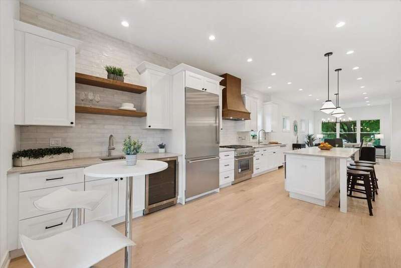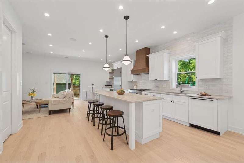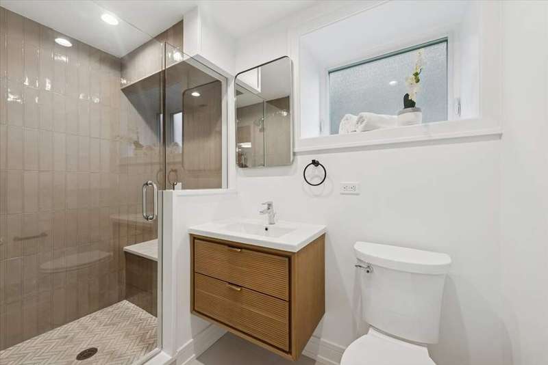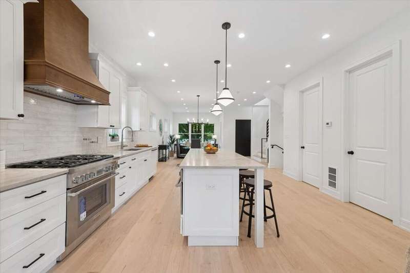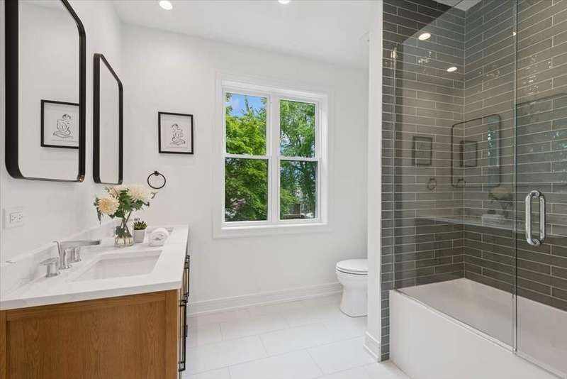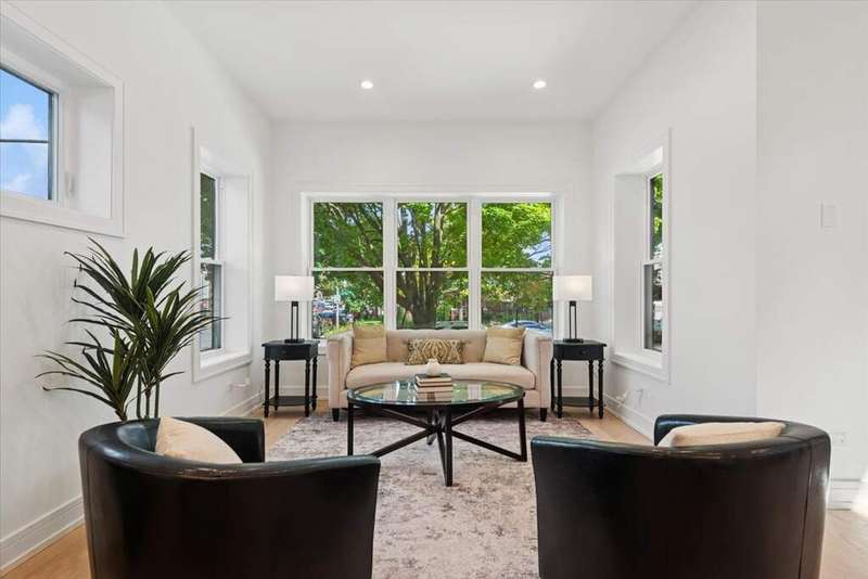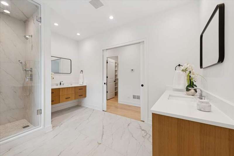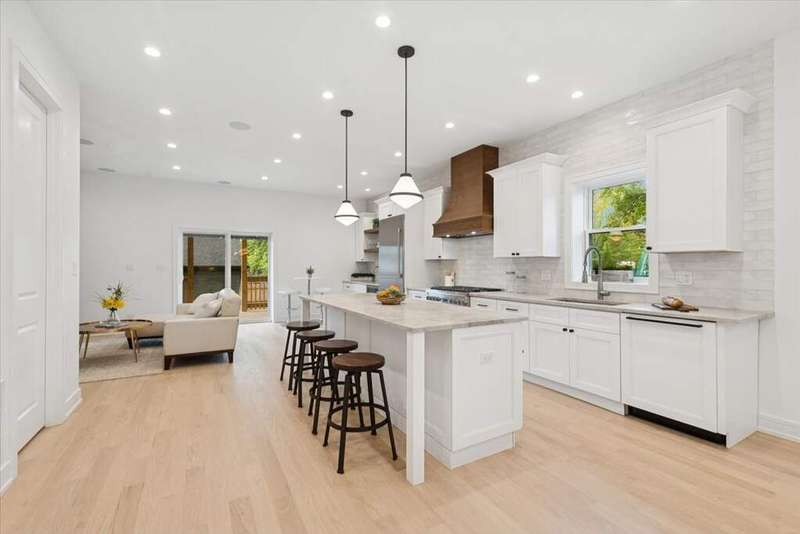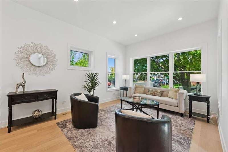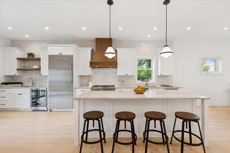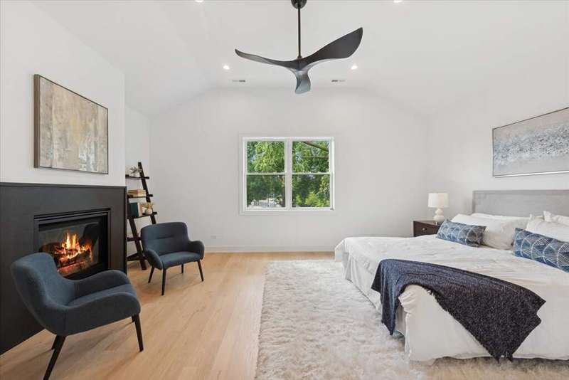 Brand new rehab in Avondale on an oversized corner lot! Very high quality renovation with excellent attention to detail and premium finishes throughout. Enjoy solid oak floors and bright interior spaces due to abundant windows and high ceilings. The large covered front porch opens up to the spacious main level which features a living and dining area, a large open kitchen and a family room with fireplace. The kitchen is gorgeous; featuring a natural stone island, Thermador range and fridge, built-in custom hood, and abundant high-quality cabinets. The kitchen overlooks the family room and breakfast area. There's a wet bar adjacent to a breakfast area; with additional storage and a beverage center. From the family room step out onto the large covered deck. The deck is massive and provides views of the backyard and a shaded place to hang out away from the weather, it's the perfect compliment to your interior living space. Upstairs, the primary suite is incredible. With vaulted ceilings and a fireplace, the bedroom is a true retreat. There are 2 fully built-out walk-in closets! The primary bathroom is luxurious as well, with separate vanities, a large shower, and a freestanding tub. Additionally, there are also 2 generously sized bedrooms and a well appointed bathroom all with great natural light. Completing the upstairs is a built out laundry room with a laundry tub, lots of cabinetry and countertop space. The lower level has a large rec room with a bar and beverage center, two more bedrooms and a full bathroom. An oversized 2 car garage with a side curb cut is very convenient. The garage has a lofted area providing extra storage. Just a few steps away is hidden Ken-Well park, which has a sports field, a playground, and a splash pad. Cermak Produce is just a couple blocks away. Tons of Avondale and Logan Square shopping, bars, and restaurants are within a few minutes walk or drive.