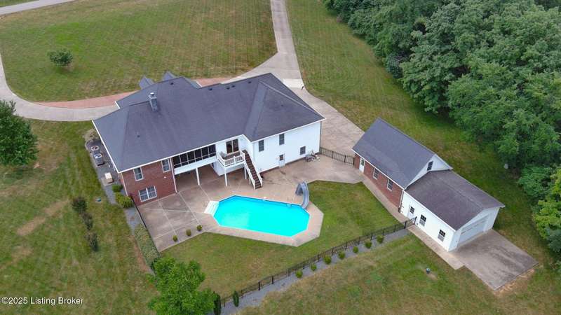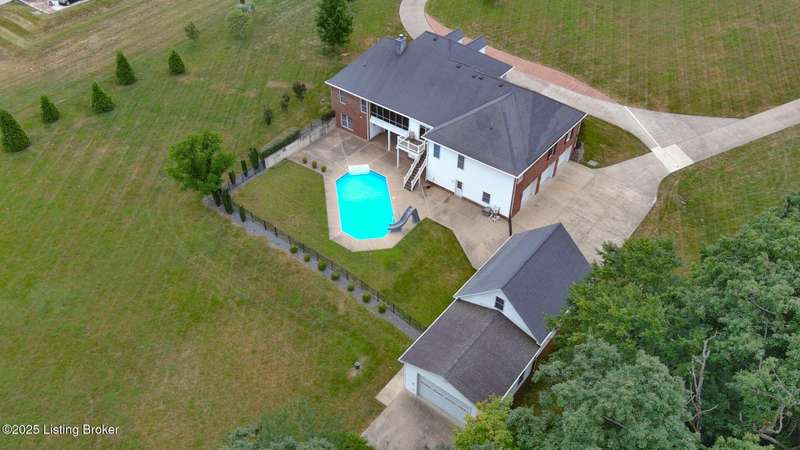 Discover your dream home on this magnificent 8.66-acre private estate, where luxury meets functionality in perfect harmony. This custom-built insulated concrete form home showcases superior construction quality and energy efficiency with thoughtful design throughout its five-bedroom, five-bathroom layout. As you enter the long circle driveway, you will know this home is truly special. The heart of this residence features a gourmet kitchen equipped with commercial sized refrigeration, elegant granite countertops, custom cabinetry and premium finishes that would make any chef smile. Rich hardwood floors flow seamlessly through the main living areas, creating warmth and sophistication. The great room that is conveniently open to the kitchen features a wood burning fireplace for those cozy evenings at home. This split bedroom floor plan ensures privacy, with the primary suite offering a spa-like retreat complete with an oversized walk-in shower, exceptional cabinetry and generous closet space. The main level also features 4 additional bedrooms for large families or family visits, as well as 2 additional flex spaces that would be perfect for a hobby room or office. The laundry room is located in the center of the home off the kitchen and was designed with cabinetry, closets and an abundance of space. The finished walkout basement expands your entertainment options with a gas fireplace, wet bar kitchen area, and flexible space for recreation or relaxation. Outdoor enthusiasts will appreciate the heated inground pool, while the screened porch provides the perfect spot for morning coffee or evening gatherings. Vehicle storage exceeds expectations with a three-car attached garage plus a remarkable four-car detached garage featuring a convenient loft space. This exceptional setup accommodates collections, workshops, or additional storage needs. Located in the desirable Auburn Hills Estates, you'll find convenient access to Hwy 313 and I-65, local shopping, and recreational facilities. The substantial acreage provides ultimate privacy while maintaining reasonable proximity to community amenities. This property represents a rare opportunity to own a meticulously crafted home where every detail has been considered for comfortable, luxurious living.