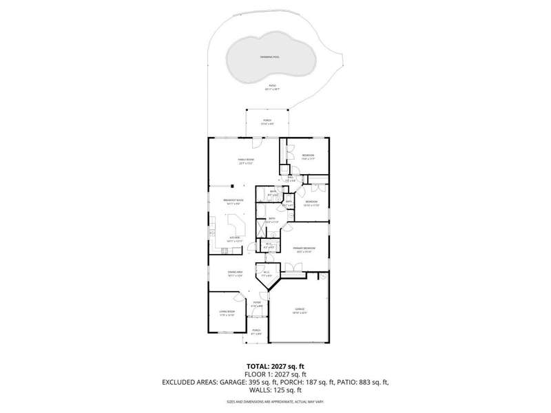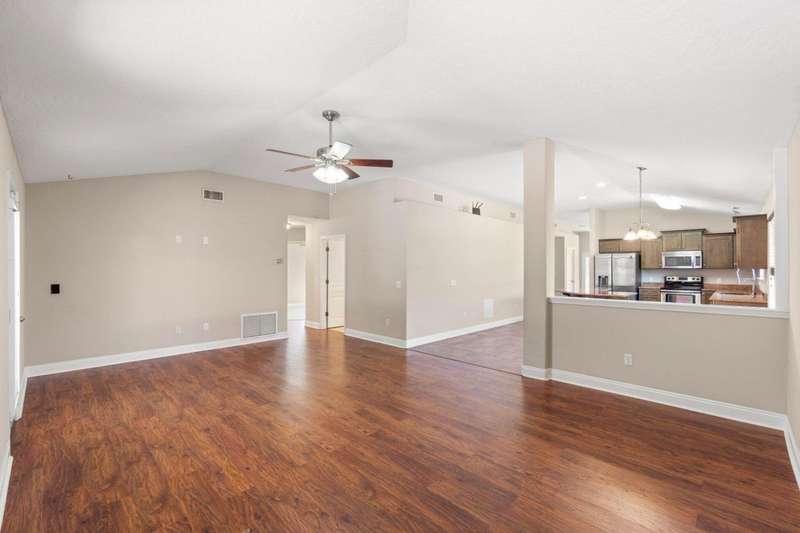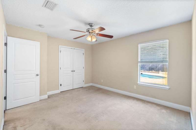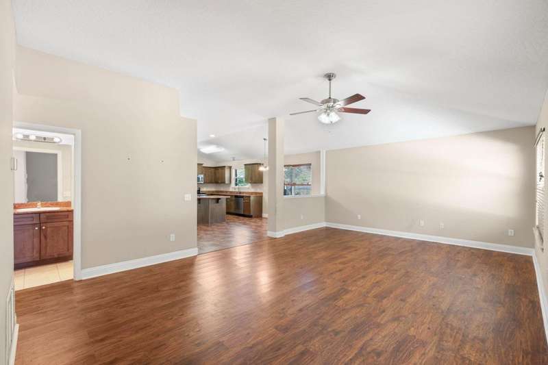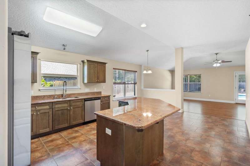 Open and entertaining layout, great for entertaining. Large inviting kitchen with granite countertops, plenty of cabinets and space for all your storage needs. The family room is nestled in the rear of the house, with two secondary bedrooms that share a full bath. The master suite is located just off the kitchen, features trey ceilings, his and her closets. En suite features a garden tub and separate tiled shower, granite dual vanities. Privacy fenced back yard with beautiful inground pool, paved pool decking, covered parking for boat or other toys. It's just a short drive to shopping, schools and the beach!