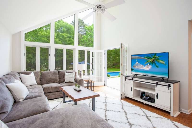 RR# RP250749. This immaculate Contemporary is the perfect combination of location and charm! Located minutes to the Jitney and train, the heart of Southampton Village and bay beaches. This wonderful home sits on a private acre and has a beautiful tranquil setting. Bask in the warm summer days in the large open backyard with ample lawn, heated pool and a spacious deck perfect for entertaining. Light filled living room with tall glass windows and French doors to the backyard, in addition to a second living room with wood burning fireplace. Also on the first floor, you will find the eat-in kitchen, formal dining room and a powder room. The second floor offers a spacious, en-suite master bedroom with a brand-new master bathroom, as well as two additional bedrooms and full bath. All new furnishings and a 2-car garage. Come enjoy your Summer in this truly ideal Hamptons home! Listing ID:738074