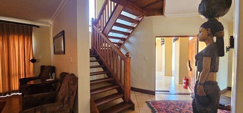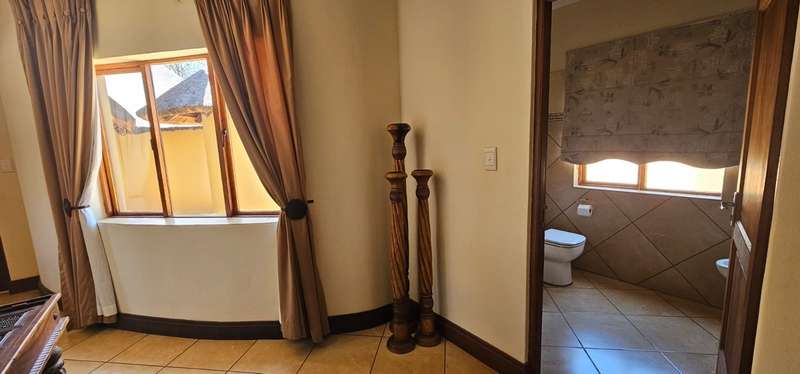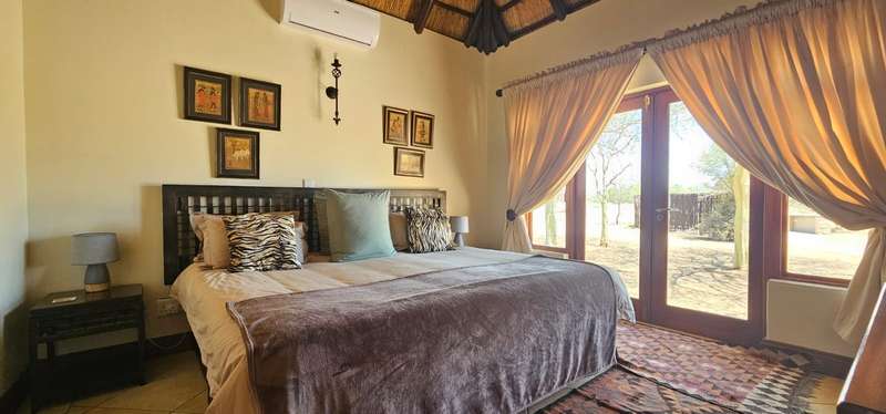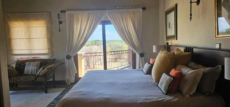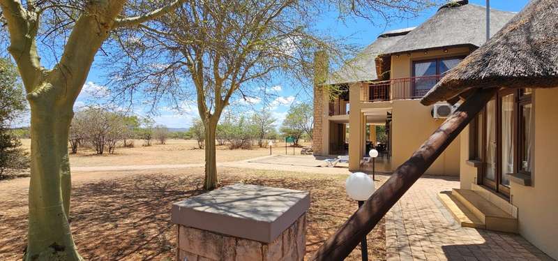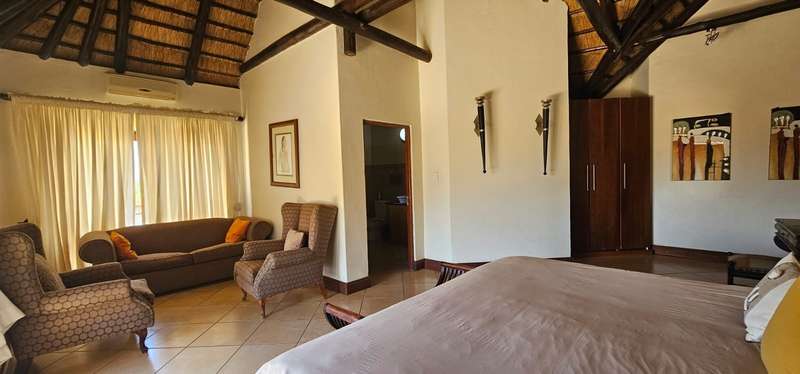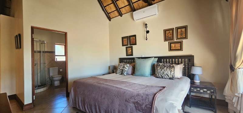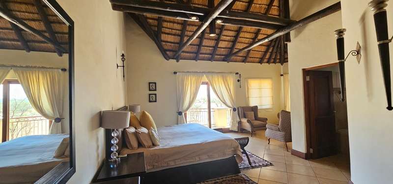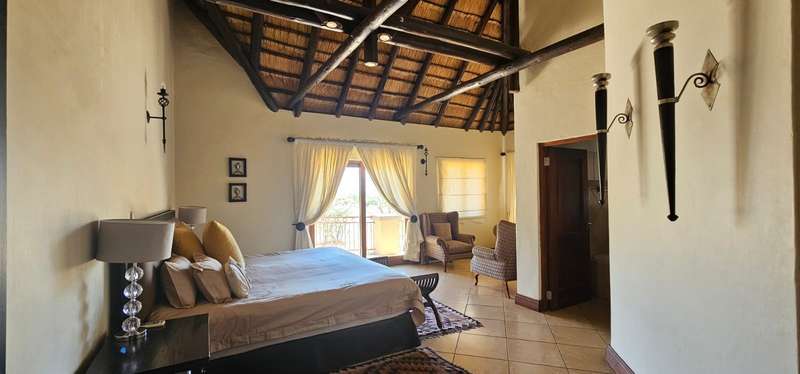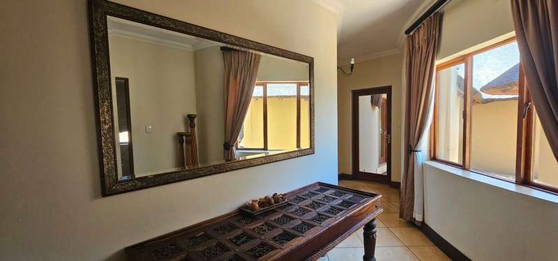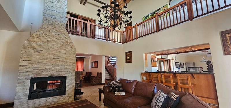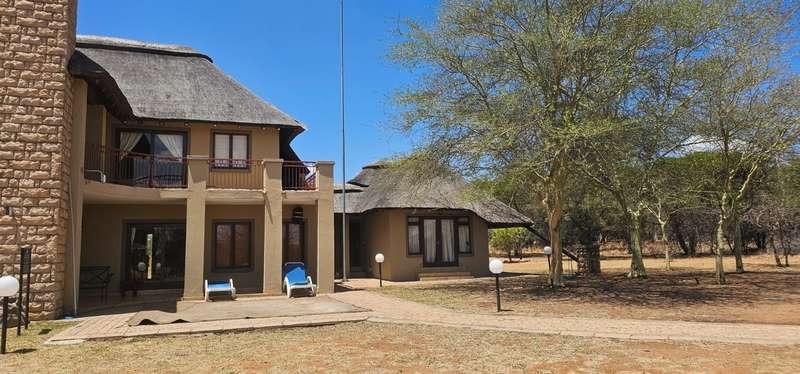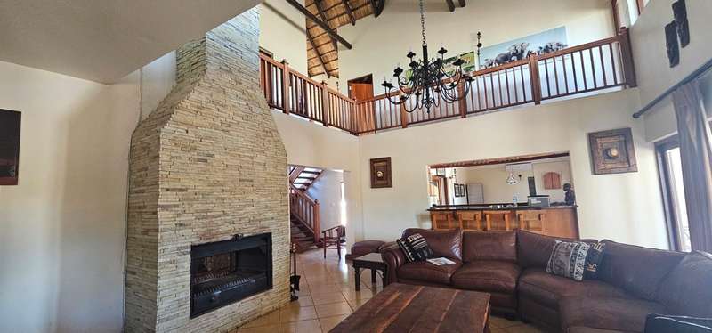 Discover your ideal sanctuary within the African bushveld. This exquisite five-bedroom lodge, situated in the prestigious Zebula Golf Estate, offers the peaceful ambiance of a safari retreat paired with world-class luxury amenities. Featuring: • Kitchen, equipped with both gas and electric stoves with ample cupboards to meet all your culinary needs. • The open-plan lounge, dining area, and kitchen seamlessly lead to a generous patio and swimming pool area—ideal for entertaining or unwinding in nature. • Five spacious en-suite bedrooms, each with air conditioning for year-round comfort. The main house includes three first-floor bedrooms, each with private balconies providing stunning views, and two private chalets with en-suite bedrooms for added privacy. • Enjoy a private fitted bar and pool room, a cozy fireplace in both the lounge and dining areas, and an elegant wooden pivot entrance door for a touch of sophistication. • A year-round patio featuring roll-down canvas screens for warmth on cool winter nights. • Note: Furniture is not included in the price but is negotiable. • Two-car carport and a dedicated golf cart garage. Experience a bespoke African bush lodge with the convenience of a world-class golf course. Embrace the finest in luxury living at Zebula Golf Estate. If this property isn’t quite right, reach out anyway; I have access to additional listings that might be perfect for you!