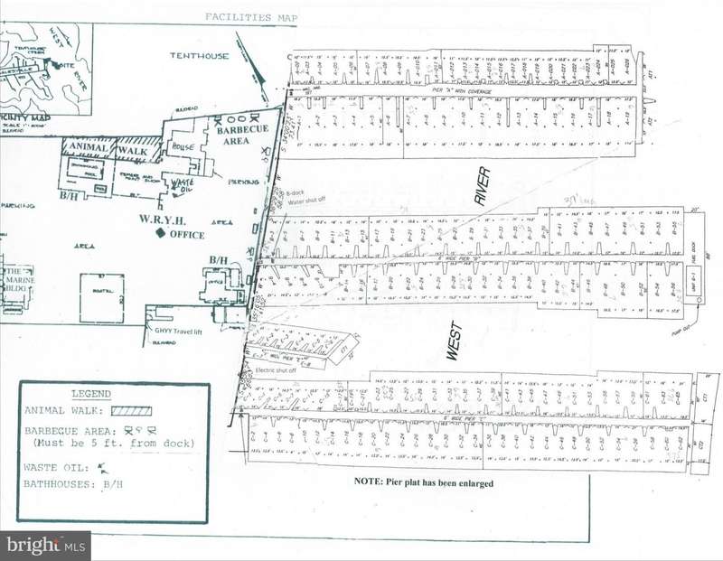 Condo boat slip at West River Yacht Harbour in Galesville! Marina amenities include waterfront pool, pool bath house with showers/changing rooms, gazebos with picnic tables, grills. Currently 30amp electric service (BGE rates apply), gas dock, waste pump out, Wifi internet access, water at pier. The plat has measurements of 14.5 ft x 47ft & 6 ft MLW. Condo fee is $525/quarter. Boat lifts are not allowed per condo docs. Full service marina. Walk to Pirate's Cove, Stan & Joe's Riverside restaurants & West River Sailing Club. Launch a kayak, play pickleball or picnic at one of the county parks within Galesville. Easy access to Chesapeake Bay.