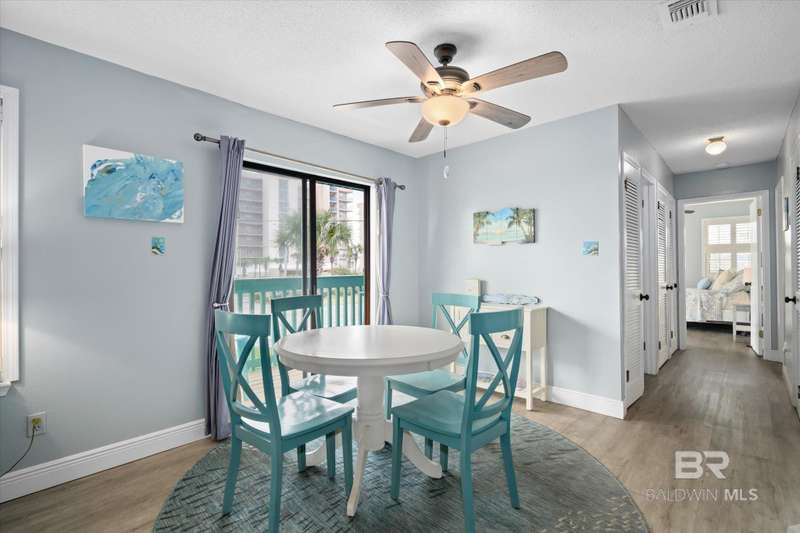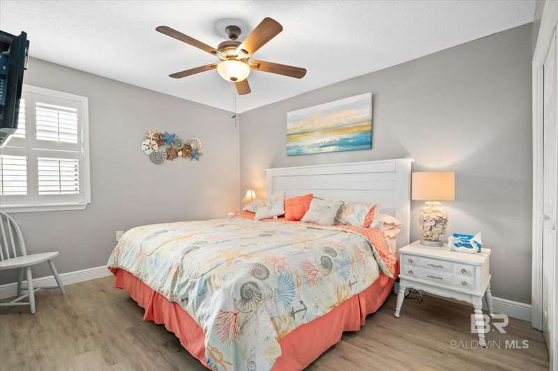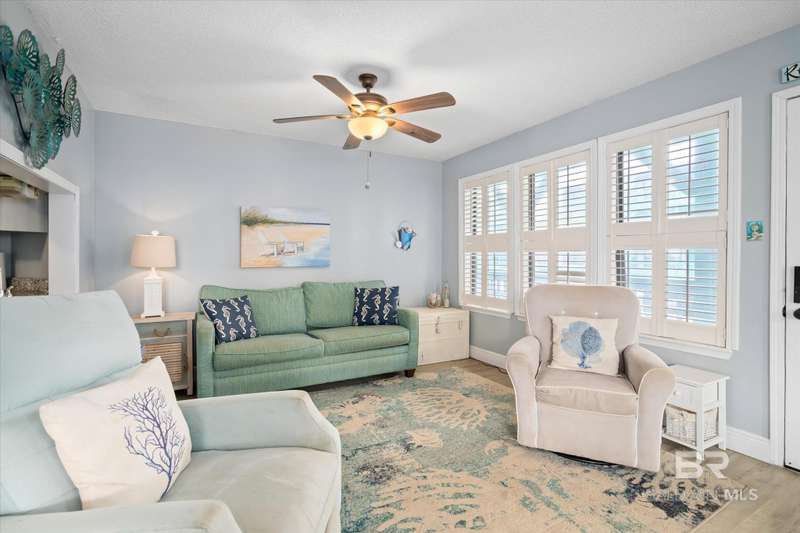 Dont miss this incredible opportunity to own a desirable vacation rental condo in Gulf Shores! This beautifully updated 2-bedroom, 2-bathroom corner unit is the only one of six in the complex with its own private balconyand its the only one currently on the market! Enjoy your morning coffee on the private balcony as you take in the sunrise with views of the Gulf or sip a cocktail watching the sunset. This unit comes fully furnished ready to rent or enjoy as your personal getaway. Step inside to discover a bright, coastal-inspired retreat featuring luxury vinyl plank flooring, granite countertops, and a soothing neutral color palette. The ensuite bathroom has been stylishly renovated with a walk-in shower, modern vanity, and a sliding barn door for added charm. Located just across the road from the beach and within walking distance to festivals, restaurants, and the Gulf Shores Public Beach, this condo is perfectly positioned for short-term rental success or unforgettable vacations. Buyer to verify all information during due diligence.