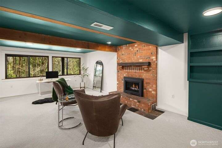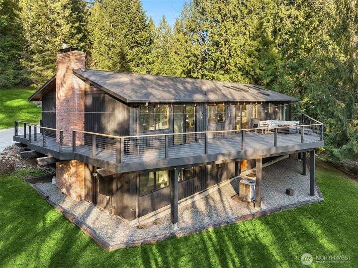 Follow the NEWLY PAVED ROAD to your serene sanctuary nestled on 2.73 acres of natural beauty. This 3,120 sqft home offers 4 beds and 2.5 baths, with an open-concept main level highlighted by cedar-wrapped vaulted ceilings and generous natural light. The kitchen provides peaceful views of the surrounding trees—an ideal setting for both cooking and unwinding. The private primary suite includes direct access to the wrap-around deck, perfect for savoring your morning coffee or watching the sun set. The lower level features a spacious bonus room, a second kitchen, and a cozy home office complete with a fireplace—perfect for work or play. Outside, relax under the stars by the firepit. A perfect blend of comfort, convenience, and nature awaits!