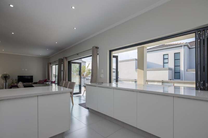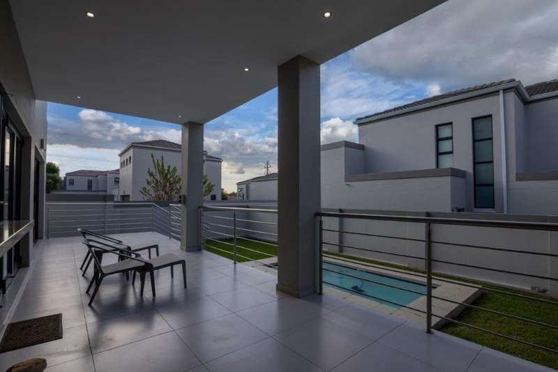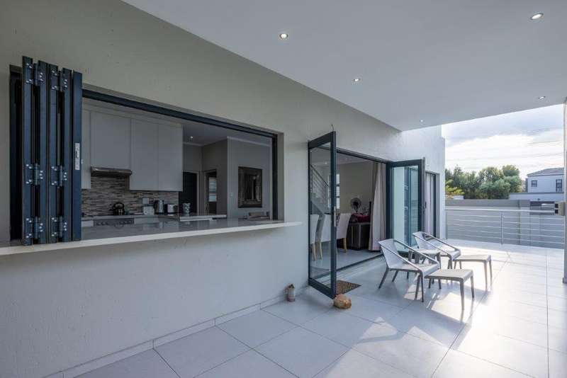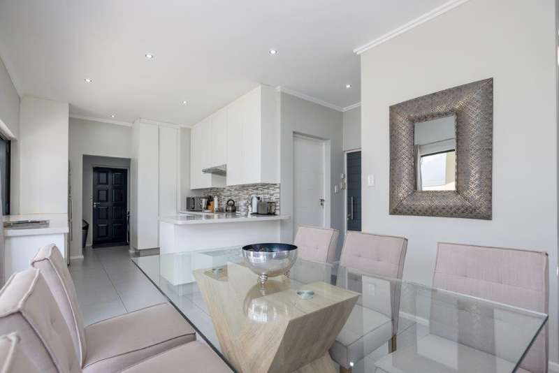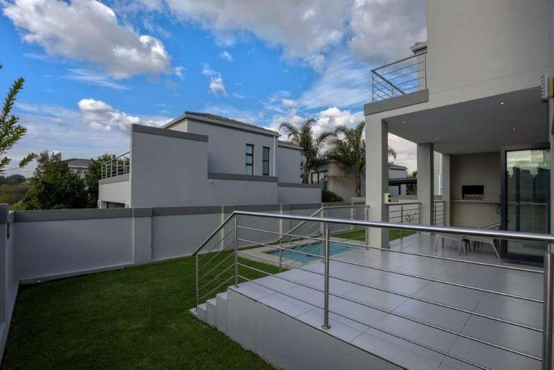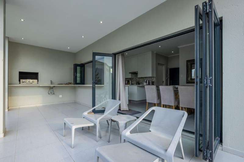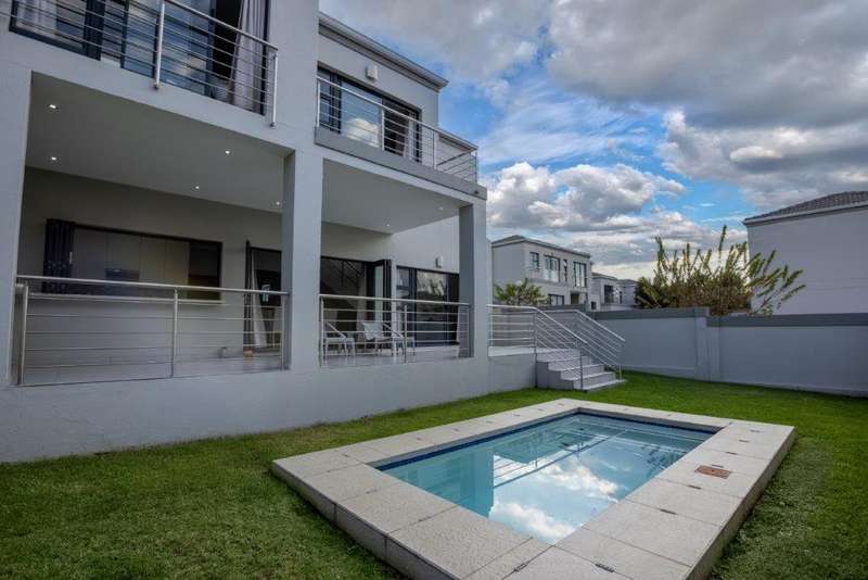 Inviting buyers from R3,549 owner asking more. A synthesis of clean lines, double volume proportions married in a velvety texture of glass windowscapes and steel. Free flowing reception areas ensuring a harmonious indoor/outdoor flow, ideal for entertaining built in braai and sparkling pool, you are set comfortable living. 3 luxurious bedrooms and balconies (The master bedroom is truly king sized), gourmet kitchen and scullery with ample space for your appliances. Double garage and 24 hour security controlled estate complete the picture