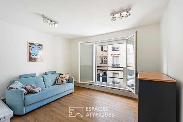The sky-facing terrace is a real asset, providing a private and quiet space in the heart of the city. The balcony pleasantly complements the space by creating a seamless connection between indoor and outdoor spaces. The immediate surroundings are characterized by the tranquility of the Alma district while remaining perfectly connected: the Asnieres and Bois-Colombes train stations, as well as the Gabriel Peri metro station (line 13), are accessible in less than a quarter of an hour on foot. Local schools, shops, and services contribute to the sought-after quality of life in this area.