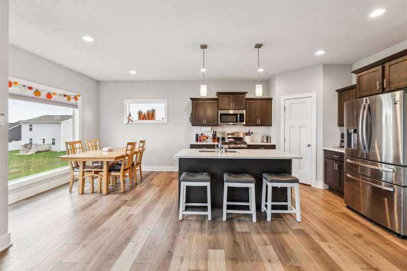Theres something about this house that just feels right. Maybe its the way the morning light hits the deck. Maybe its the view looking toward Memorial Balloon Field - where, on the right day, youll catch the balloons rising and feel that familiar sense of wonder, even if youve lived in Indianola your whole life.This thoughtfully designed east-side ranch offers four bedrooms, three bathrooms + a three-car garage all wrapped in clean lines and natural light. The kitchen, dining, and living space are anchored by rich cabinetry and natural light. The laundry links to the mudroom and the primary suite, creating a quiet loop of everyday ease.Three bedrooms on the main floor. One is downstairs, right next to a large family room with walk-out access. Bonus is the storage room that fits your needs. The backyard is fenced + the front has permanent holiday lights that add charm and curb appeal year-round. All this + a home warranty for added peace of mind.If youre picturing yourself here, lets make it happen. Schedule your showing today.