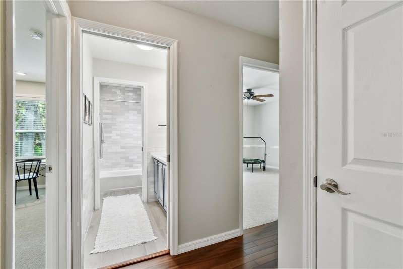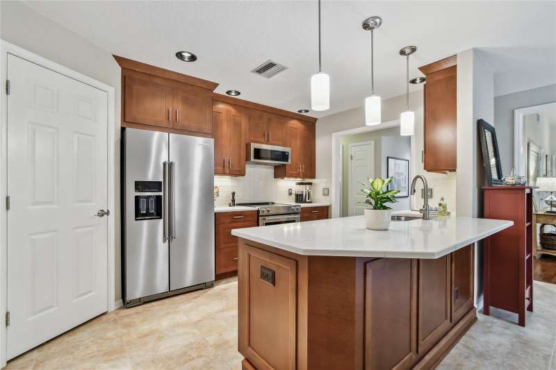 Modern Comfort Meets Natural Charm in this beautifully and meticulously maintained 5-bedroom, 3-bathroom residence nestled in the heart of Palm Harbor. Combining style, modern comfort, and character, this cherished family home is ready to welcome its next chapter. From the moment you arrive, the home’s charming curb appeal and thoughtful design upgrades invite you to settle in and stay awhile. Inside, enjoy a light-filled open layout with rich wood flooring in the main living areas, cozy carpeted bedrooms, and soft natural light flowing through every room. Mindful design details like inviting corners, neutral tones, and upgraded finishes create a warm, move-in-ready space. Designed for both comfort and connection, the kitchen features modern quartz countertops, timeless wood cabinetry, and stainless-steel appliances, centered around a spacious island perfect for sharing meals and creating memories. The open concept living and dining areas flow to your private outdoor retreat, blending indoor and outdoor living. The primary suite is conveniently located on the main level and features double doors that open to the garden and patio. The spa-inspired en suite bathroom features a sleek vanity, walk-in shower, LED mirror and generous closet space thoughtfully designed for everyday convenience. An additional downstairs bedroom and full bath - with a tub and overhead shower - offer comfort and flexibility for guests or multigenerational living, while a third bedroom on this level is currently used as a home office, adding even more versatility. Upstairs, two bright and airy bedrooms along with a full bathroom provide privacy and an ideal setup for multigenerational living or anyone needing a little extra space to call their own. Step outside into a peaceful backyard sanctuary where nature and tranquility take center stage. This outdoor space is lined with a living fence and features charming pocket gardens, dappled sunlight filtering through mature trees, and a spacious wooden deck and covered patio - perfect for entertaining or simply relaxing. Beyond the yard, the property opens to a wooded green space and a gentle creek, inviting visits from deer, butterflies, and migrating songbirds - a rare and soothing natural backdrop. Whether you’re greeting the morning with a cup of coffee or unwinding in the evening, this outdoor retreat is made for creating lasting memories. Additional upgrades and features include: • Hurricane windows and doors throughout • Sentricon termite protection • Underground water drainage system • Low HOA fees with great amenities • Expanded split floor plan with a private owner’s suite and a potential in-law suite • Two-car garage with built-in storage. Located in one of Palm Harbor’s most sought-after communities, the Village of Woodland Hills offers a peaceful, tree-filled setting and a true neighborhood feel. Residents enjoy access to a variety of community amenities, including: • Community Pool • Tennis & Pickle Ball Courts • Playground • Sidewalk-lined streets perfect for walking and biking • Shaded green spaces throughout the neighborhood With top-rated schools, charming downtown Palm Harbor, Honeymoon Island, and the Gulf beaches just minutes away, and easy direct drive to TPA, this location offers both convenience and a high quality of life. Schedule your private tour today! ROOF 2021, HVAC 2015, Water Heater 2023. Windows/Doors 2017.