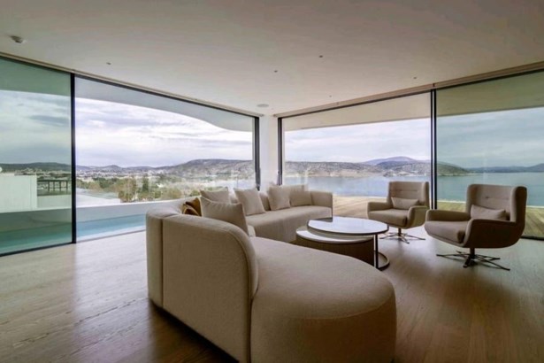 This luxurious residence is located on the 4th and 5th floors of a building designed by a renowned architectural team, offering stunning views of the Athenian Riviera beach.