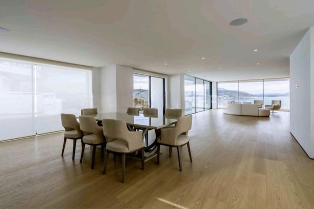 The standout feature is the balcony pool with reverse swimming jets, offering spectacular sea views. The penthouse is a smart home with remote control via a mobile app and has an elevator providing access to both floors.
