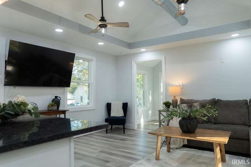 WELCOME HOME to your ONE bedroom, ONE bathroom ranch! This home has been newly RENOVATED from the ground up. You will love the curb appeal as you pull up front or around back to be greeted by the large side and backyard. Stroll up the sidewalk and appreciate the front and side porch with built-in planters. Step inside to be greeted by your cozy sunroom that flows right into your open concept living room and kitchen. Kitchen is complete with custom cabinets and granite countertops. Down the hall you will find your master suite with access to the full bathroom that also is accessible to your stackable washer and dryer area. To the side of the house, you will find your open deck, perfect for grilling and relaxing. A few of the many updates include: Roof, Siding, Windows, Doors, Decks, Flooring, Drywall, Painting, Cabinets, Appliances, HVAC, Lighting, Spray Foam Insulation, and so much more. Utility companies are: Duke Energy and Bedford City Utilities. This home has the possibility of qualifying for 100% USDA financing. Seller is a licensed real estate agent. Come check out this charming home today!