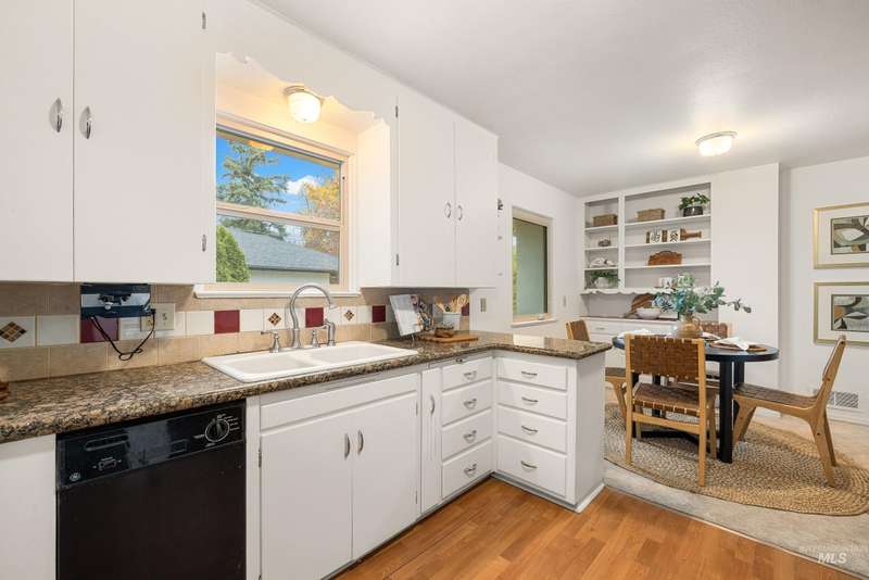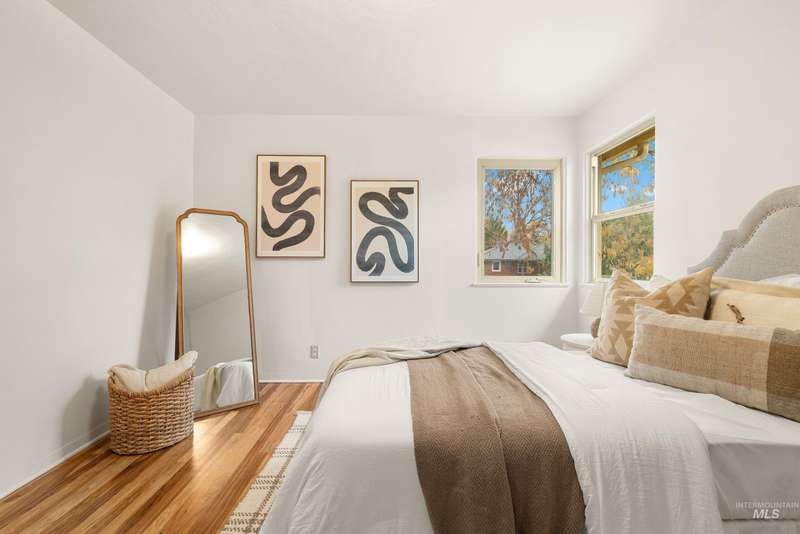 The quintessential Boise Bench home! Step into natural light, brand new hardwood floors, carpet and paint! Conveniently nestled on two lots, this property is one of kind in it's location! Ability to build an ADU or MIL quarters or add on to the oversized detached 2 car garage. Sun-filled living spaces, a thoughtfully updated kitchen, and flexible bedrooms make everyday living effortless. Enjoy mature trees, generous yard space, and the feeling of privacy that only a corner lot can offer, all just minutes from downtown, parks, and local favorites! Original built-ins highlight the home’s classic craftsmanship while downstairs features a versatile reading/office/book nook, offering a quiet escape or productive workspace.Outside, enjoy a covered back deck and soothing hot tub. Don't miss this turnkey opportunity in one of Boise’s most desirable locations!