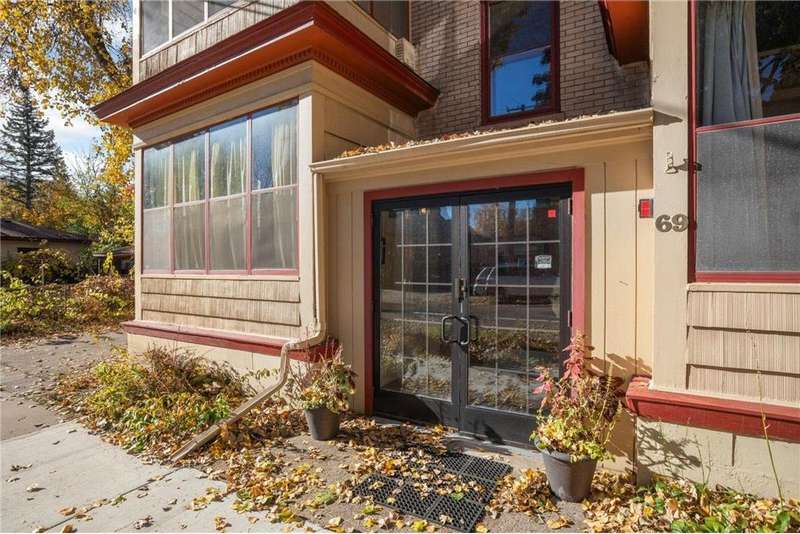 Welcome home to this charming 2BR Condo in prime St. Paul location just steps from Grand Avenue shopping, dining, and entertainment, with easy access to both downtowns. This top floor South-facing 2bed/1bath unit is filled with old world character and natural light. Featuring hardwood floors, 9ft ceilings, and beautiful original woodwork craftmanship throughout. Enjoy spacious living and dining area perfect for entertaining, a sunroom/3 season porch ideal for a quiet morning coffee and book, and a large kitchen with maple cabinetry, stainless steel appliances, colorful countertops, and abundant storage and counter space for gourmet cook creativity. Additional highlights include a very large private storage room, free laundry facilities, and a dedicated garage stall, plus a shared outdoor garden space to enjoy. Ideally located just blocks from Summit Avenue and within walking distance of Michell Hamline, The Lexington, Red Rabbit, Bread & Chocolate, and Selby/Dale shops, this condo offers the perfect blend of historic charm and close modern conveniences. Move-in ready! Come see it today and make this charming St. Paul condo your special new home!