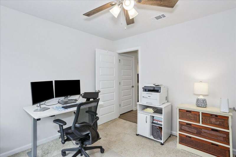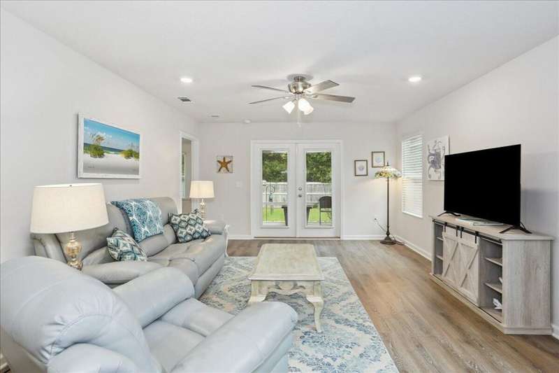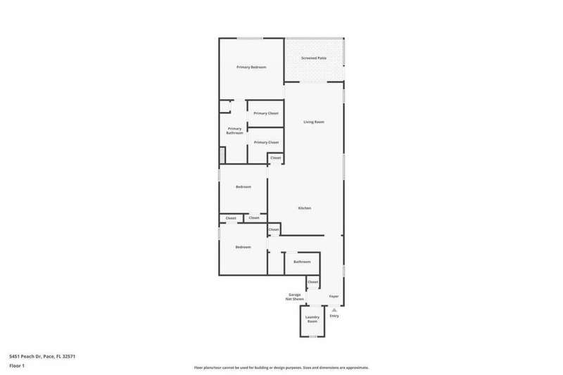 Better than new in the heart of Pace! Within the desirable Woodlands community, this 3-bedroom, 2-bath home stands out from the rest with numerous upgrades. Built in 2022, the open-concept floor plan offers a bright, spacious living area and modern kitchen including an island, tons of white cabinetry, stainless steel appliances, and a large, walk-in pantry--making it suitable for comfortable everyday living as well as entertaining. The split floor plan provides the ultimate in privacy with each bedroom having its own hallway, along with ceiling fans and ample closet space. Custom touches adorn the bathrooms including new light fixtures and hardware. The generously sized primary suite features a walk-in closet, double vanities, private water closet, and a large step-in shower, all overlooking your backyard oasis. Your outdoor private retreat begins on the screened porch, with wooded views and no rear neighbors. Use the adjacent extended patio to grill dinner, while enjoying a fully fenced backyard with tasteful landscaping and an irrigation system to complete your backyard haven. Additional features include a front storm door bringing in tons of natural light, gutters, and Smart Home technology. Centrally located near I-10, Highway 90, NAS Whiting Field, and top-rated schoolsthis home offers an unbeatable combination of value, style, function, and convenience.