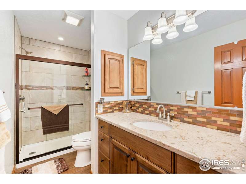 Experience patio home living at its best. This all brick patio home backs to the Aims Community College pond. Move in and enjoy this tastefully updated home. The main floor features a large kitchen and great room with expansive views to the west and a patio that runs the length of the home with a gas line for your grill. The main bedroom has a full bath with double sinks as well as a large walk-in closet and a door to the covered patio overlooking the pond. The second main floor bedroom is large and also has pond views. The walkout lower level has another patio and features a great room, bedroom with beautiful full bath and an office area. RV parking is available for owner occupants. The 4 car tandem garage has storage galore and a sink.