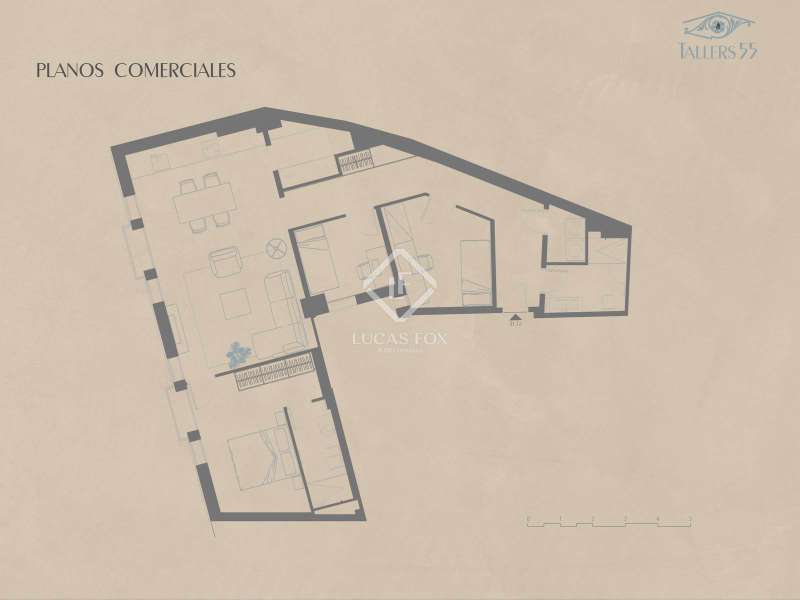 Lucas Fox presents Tallers-Residences, an exclusive new build development in the heart of Barcelona. Located in a fully refurbished historic building , this collection of 12 homes combines original architectural charm with a contemporary and elegant interior design. The spacious apartments, with three bedrooms and floor areas ranging from 108 to 120 square meters, stand out for their functional layouts, high ceilings, and high-quality finishes. Wooden carpentry, synthetic wooden floors , and bathrooms clad in large-format porcelain tiles create sophisticated and inviting spaces. The kitchens, equipped with high-end appliances , are designed to offer maximum comfort and functionality. This particular property is located on the fourth floor of the building and has 108 m² of interior space and 8 m² of private exterior space. It has three bedrooms, two bathrooms (one en suite ), and a spacious living room dining room area with an open kitchen, designed to maximize natural light. Its functional layout and open-plan design provide a sense of well-being and fluidity in every room. The development includes an exclusive communal area with a pool and sun terrace, as well as a social and coworking space. These are ideal spaces for relaxing, socializing, or working without leaving home. Some homes feature private balconies or terraces, providing added value in one of the city's most coveted locations. Tallers-Residences represents a unique opportunity to live in the centre of Barcelona and enjoy all the comforts of a modern property without sacrificing the character and history of its surroundings. Don't hesitate to contact us for more information and to arrange a visit.