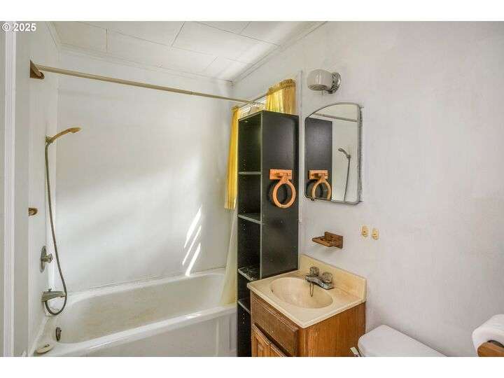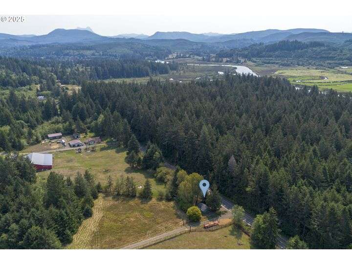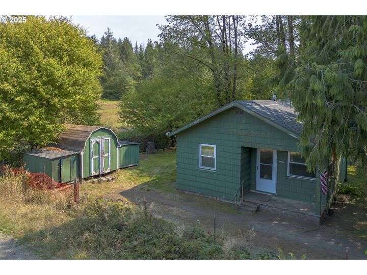 Little House Under a Big Cedar Tree! Cute country cottage eight miles from the Astoria roundabout. A rare Olney-area affordable home surrounded by tranquil pastures and woods. This solitary cottage is sheltered from the wind and enjoys shady summer afternoons. The level, easy-maintenance yard features a magnificent western redcedar, cottonwoods, a Sitka spruce, and crab-apple trees. The three-vehicle driveway has safe highway access/visibility. This surprisingly spacious tiny home has a new electrical panel, new cadet wall heaters, fresh interior paint, efficient floor plan, triple-pane windows, utility/laundry room and farm kitchen with ample cupboards. Attic and shed provide storage and the covered porch offers shelter. Check out this little gem!