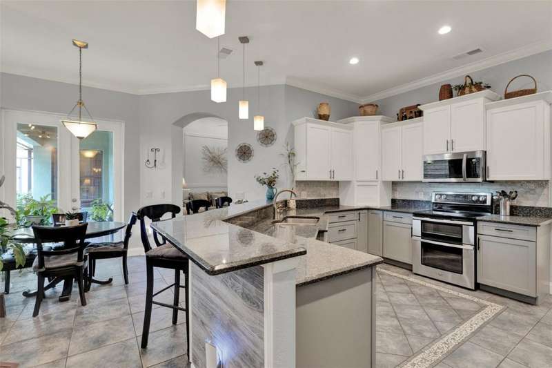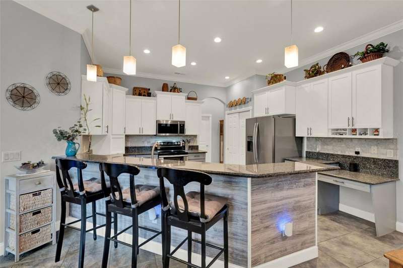 Welcome to your new oasis in Magnolia Pointe! Seller to credit $14000.00 dollars toward closing costs. Great opportunity to help your buyers save on monthly payments and closing costs!. VA financing welcome and full title and mortgage support provided-ideal for first-time and veteran buyers seeking a seamless move into the desirable Clermont area. All qualified buyers are welcome.For those seeking a refreshing change of pace and exceptional value, especially buyers moving west from Winter Park, Orlando, or Ocoee, this stunningly updated 4-bedroom, 3-bath home offers the ideal transition. Nestled on a quiet cul-de-sac in the 24 hr. day On-site Security Personnel for the gated community of Magnolia Pointe, you'll discover the highly desirable Chain of Lakes area lifestyle you've been dreaming of. First-time homebuyers, take note: this move-in ready beauty offers incredible modern upgrades and resort-style living without the complexity. Bring your boat! Enjoy private community access to John's Lake via the convenient boat ramp. From the moment you arrive, you'll be captivated by the bright, airy layout and the perfect blend of comfort and sophistication.Inside, experience true peace of mind with a renovated family room and kitchen featuring sleek new flooring, granite countertops, and stainless steel appliances. Breathe easy with an ultraviolet HVAC air cleaner, plus a roof with Solar Panels (saving you on electric bills!), 3M wind-protective window coatings, updated 4 roof gutters,2024 Daiken Heat Pump/Condenser /Air Handler and Hot Water Tank. The 2-car garage with overhead storage racks provides extra storage.Outside, unwind in your re-screened lanai, newly sealed paver brick pool deck & enjoy your private Tiki Hut with Built-in Grill. Dive into luxury in your solar-heated, saltwater pool with a variable-speed pump. Stay connected and secure with a Ring Security System (available for separate purchase!) and a smart irrigation panel.The exterior was freshly painted within the last 5 years. The interior was freshly painted within the past 30 days. This home is the ultimate blend of modern upgrades, peaceful privacy, and truly turnkey living. The community offers lush landscaping & natural beauty, creating a serene environment along with gated security for peace of mind. Amenities include a Clubhouse, billiards, pool, tennis and pickleball courts, parks & playground, nearby walking trails and of course the community pier and boat ramp for boating, fishing & other water activities.This home offers unparalleled value and an easy transition into a desirable Florida lifestyle. Don't let this opportunity pass by - visit this exquisite home today and experience the beauty firsthand!