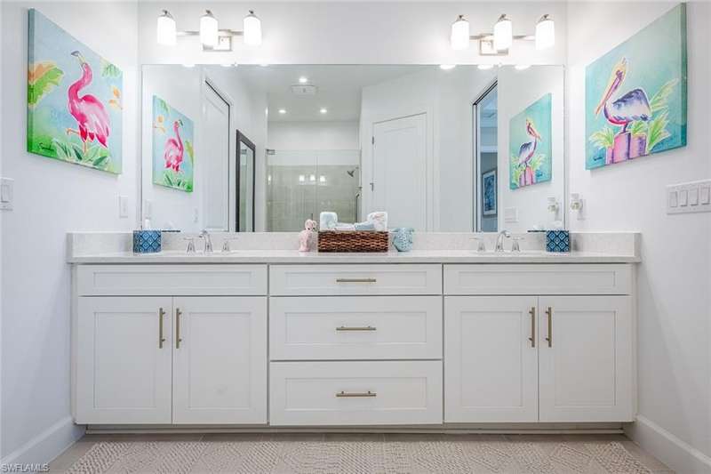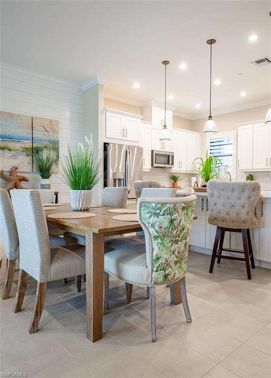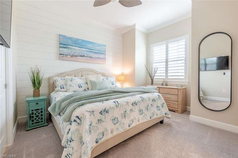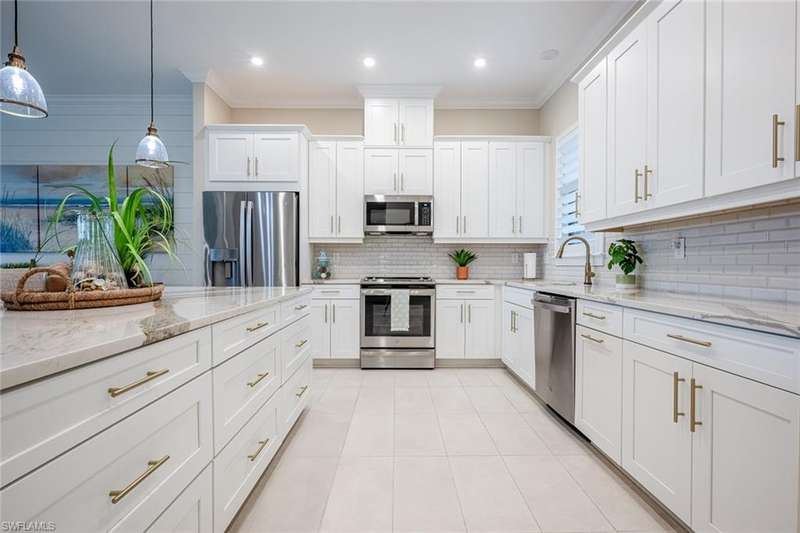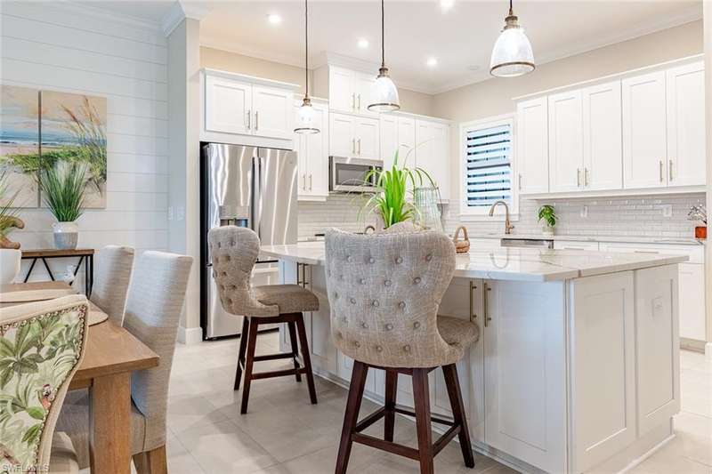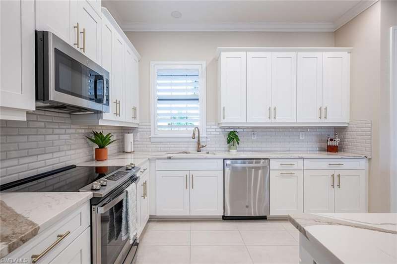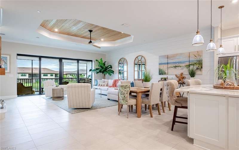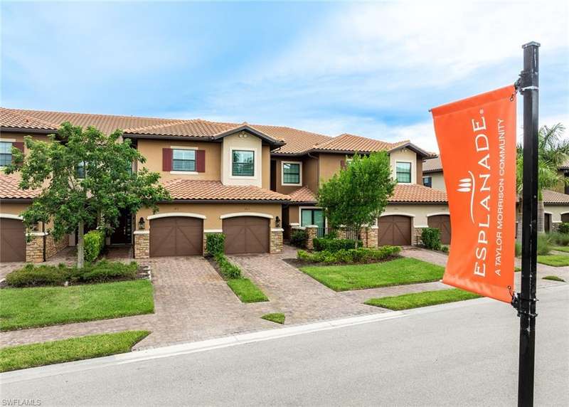 Welcome to this elegant turnkey second-floor coach home featuring 3 bedrooms, 3 bathrooms, and a 1-car garage, built in 2022 within the highly desired, guard-gated community of Esplanade By The Islands. A spacious, open floor plan greets you with beautiful custom tray ceilings and designer fans, creating a light and sophisticated ambiance. The designer upgraded kitchen showcases stainless steel appliances, Cambria quartz countertops, built-in cabinetry, and a sleek fireplace perfect for everyday living and effortless entertaining. The luxurious primary suite offers an expansive shower, dual vanities, and an oversized walk-in closet with custom California closets, providing both comfort and convenience. Step out to the expansive lanai and enjoy tranquil views of the serene lake and tropical wildlife. Custom Plantation shutters throughout. Esplanade By The Islands is renowned for its resort-style amenities tailored to a luxurious, active lifestyle, including a state-of-the-art fitness c