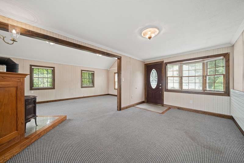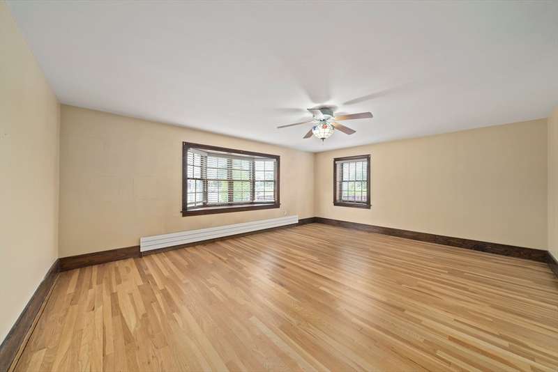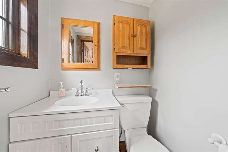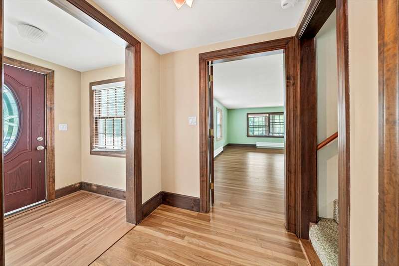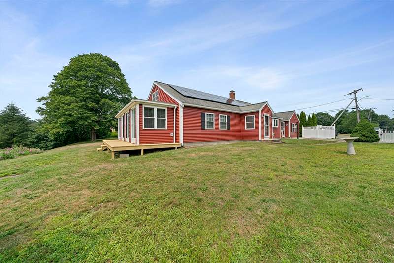 HUGE $40k PRICE DROP PLUS $10k buyer credit towards closing costs & prepaids. Charming Cape-Style Home in Prime Location! Ideally situated near shopping, restaurants, schools, golf, marinas, the highway, bus route, and just a short drive to the beach. This well-loved home offers comfort and convenience. The open floor plan features gleaming hardwood floors, a spacious eat-in kitchen, cozy family room with gas stove, large living and dining rooms, plus a main-level primary bedroom. Enjoy the sunroom overlooking the beautiful rolling lawn perfect for relaxing year-round. Upstairs you'll find two generously sized bedrooms, and the massive partially finished basement with half bath that offers endless potential. Leased solar panels provide energy savings and can be transferred to the new owner. This delightful home is ready for your personal touches don t miss this hidden gem! This is an estate sale and this home is being Sold As.