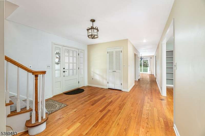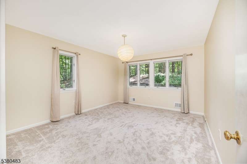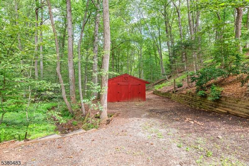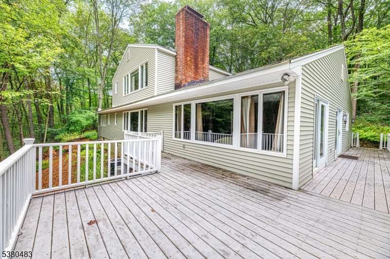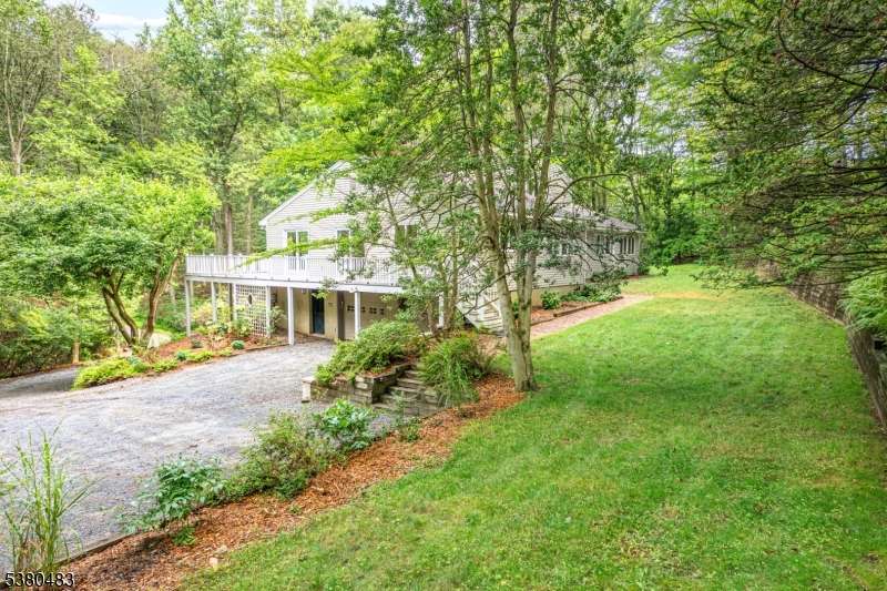Experience the perfect blend of nature, privacy, and comfort on five gated, wooded acres bordering historic Lewis Morris Park and Jockey Hollow National Park. This distinctive 4-bedroom, 3-bath retreat offers a flexible layout ideal for both everyday living and entertaining. Enjoy the ease of one-floor living, or escape to the spacious primary suite a serene sanctuary with sweeping views of the tranquil stream and surrounding forest. Step outside to your own private trail system, perfect for hiking, biking, or simply savoring the peaceful outdoors. Homes with this rare mix of natural beauty, convenience, and timeless charm are seldom available. Set in an upscale neighborhood with wide, tree-lined streets, Belgian block curbs, and custom-built homes, this property offers an unmatched lifestyle.