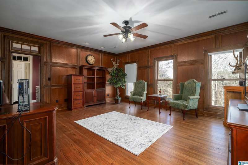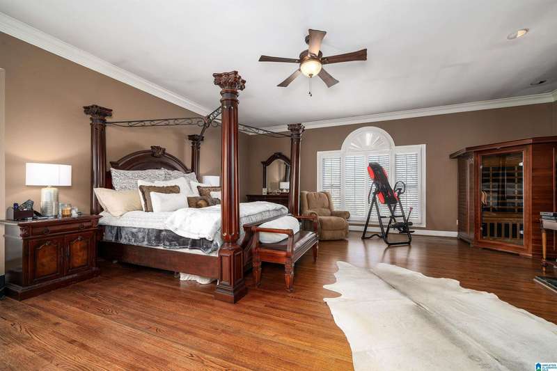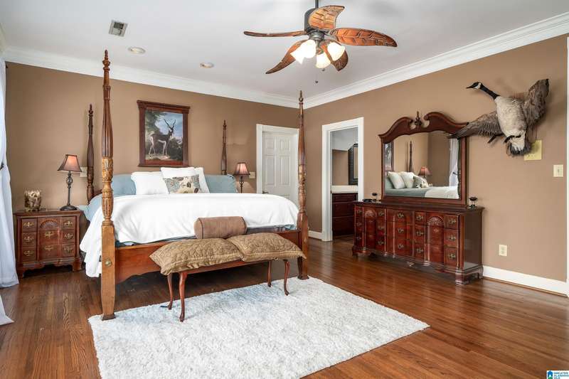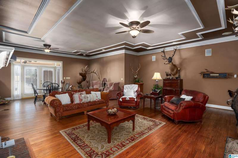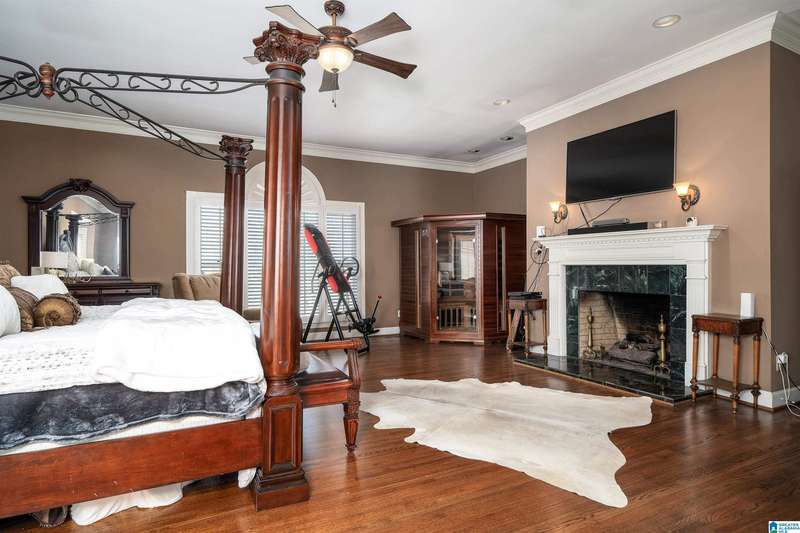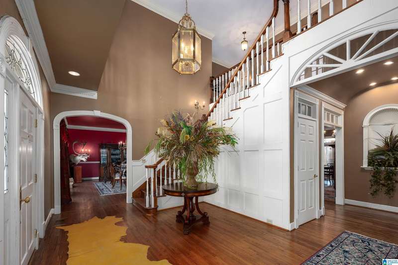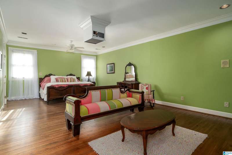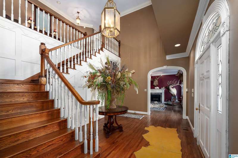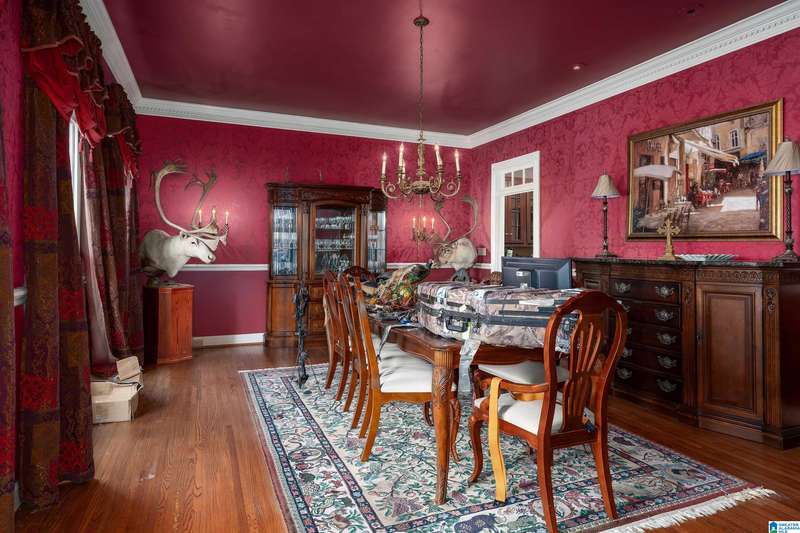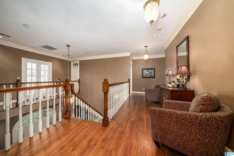 Approx 21,000 sq ft of private estate located on 37 +/- beautiful acres. Features 8BR, 8BA, 2 half baths, in-law suite w/own kitchen, entrance & garage. Amenities include large swimming pool, tennis, lake, helicopter pad, (or additional parking) 2 saunas, steam room, hot tub, game room, gym, surround sound & security system with gated entrance. Lots of details including, 9' ceilings, dentil molding, hardwoods, banquet size dining room, granite countertops & commercial grade appliances. Main level has a game room, 2 dens, 2 story foyer, formal living room, master suite. Outdoor living includes cabana with bath, bar, grill & sauna. Estate living with all the amenities & only 20 minutes from downtown. Five minutes from Hwy 280 Shopping and restaurants. This home was designed by Phillip Franks, modeled after a historic James River plantation. This home would make a great corporate retreat or possible bed & breakfast.