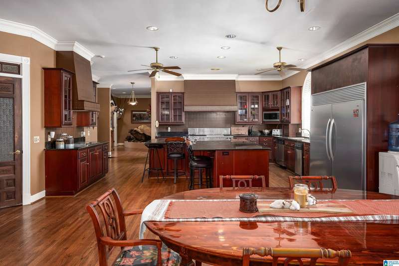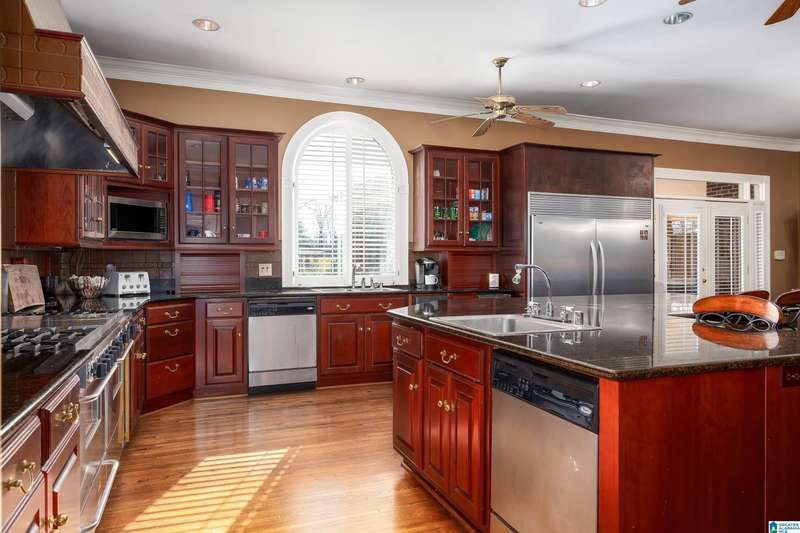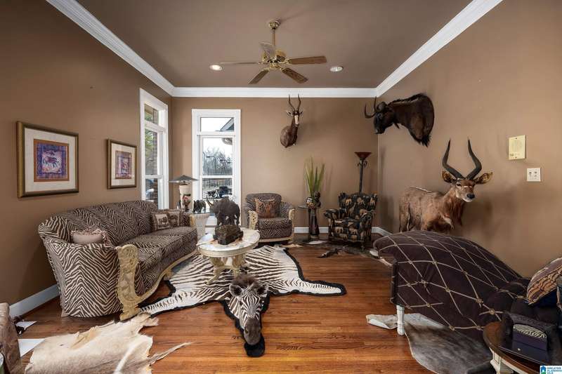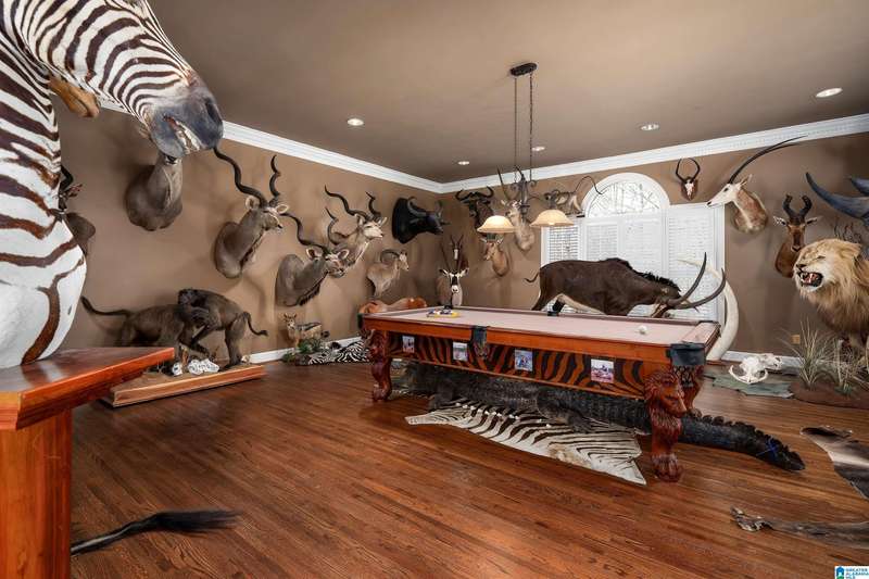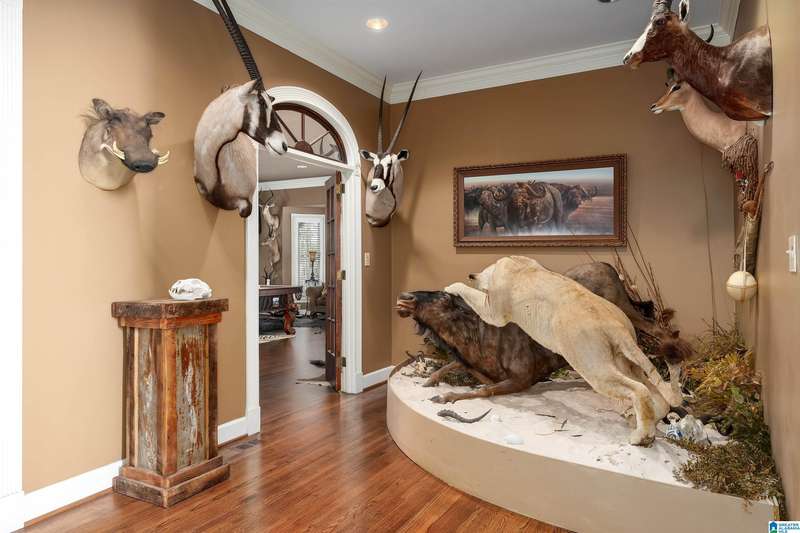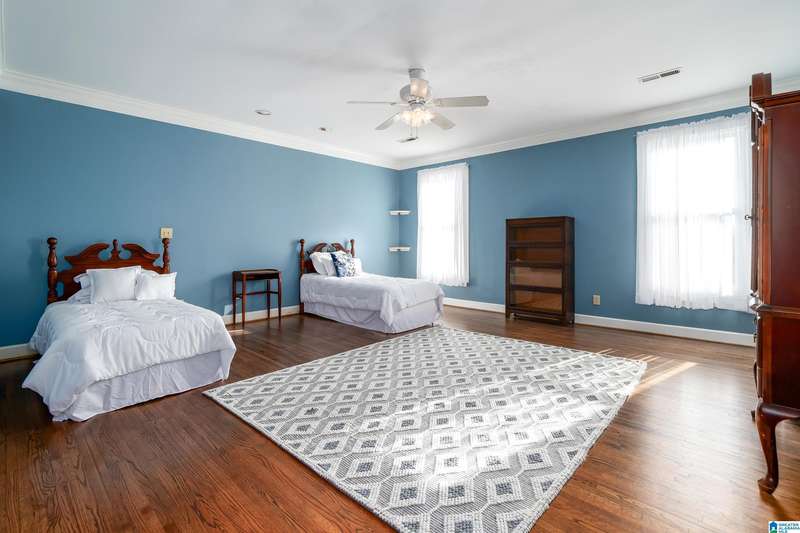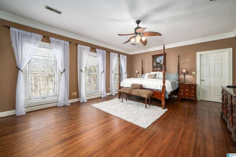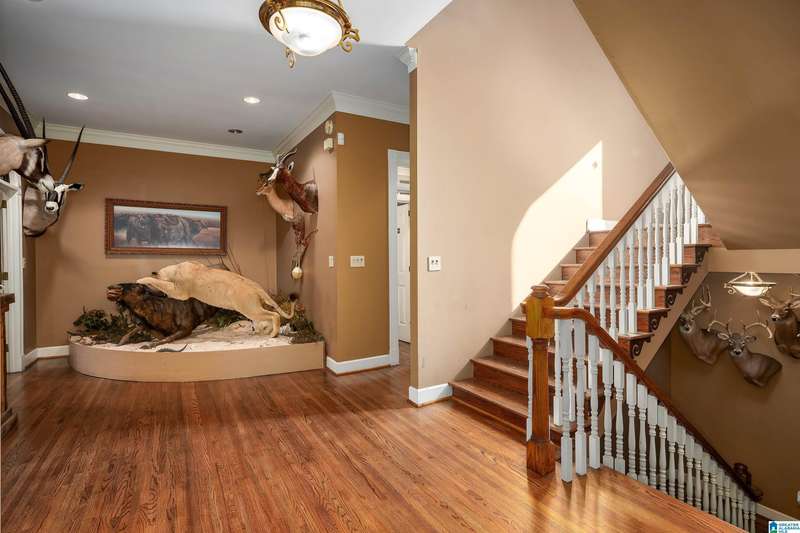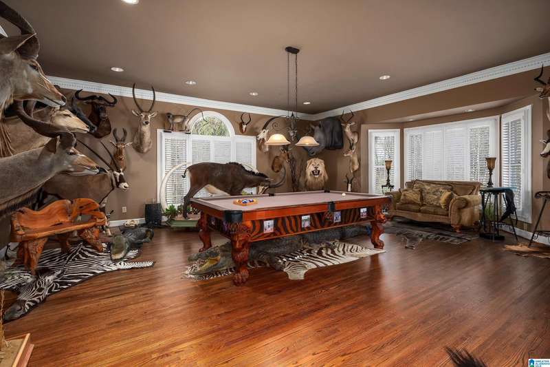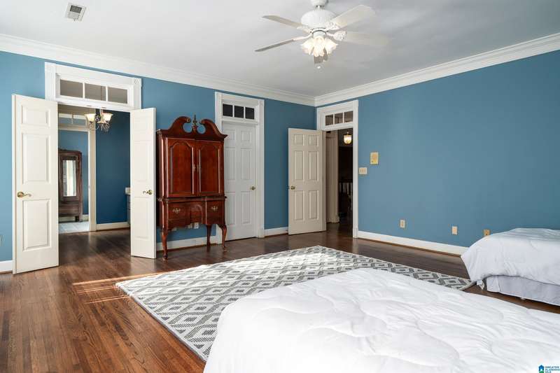 Approx 21,000 sq ft of private estate located on 37 +/- beautiful acres. Features 8BR, 8BA, 2 half baths, in-law suite w/own kitchen, entrance & garage. Amenities include large swimming pool, tennis, lake, helicopter pad, (or additional parking) 2 saunas, steam room, hot tub, game room, gym, surround sound & security system with gated entrance. Lots of details including, 9' ceilings, dentil molding, hardwoods, banquet size dining room, granite countertops & commercial grade appliances. Main level has a game room, 2 dens, 2 story foyer, formal living room, master suite. Outdoor living includes cabana with bath, bar, grill & sauna. Estate living with all the amenities & only 20 minutes from downtown. Five minutes from Hwy 280 Shopping and restaurants. This home was designed by Phillip Franks, modeled after a historic James River plantation. This home would make a great corporate retreat or possible bed & breakfast.