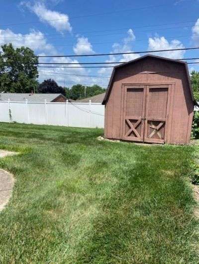 Only two owners of this well-maintained home. Expanded bedrooms with a 28X15 family room with wood burning FP. that opens to a Florida room. Total brick wrap, fully fenced in yard, storage bldg. House comes complete with washer and dryer. NOTHING TO DO BUT MOVE IN. All that is needed is your final touches. IMPROVEMENTS: 2025 new drywall replaced in living, dining and kitchen ceilings, all rooms, baseboards, doors and ceilings painted. New insulation blown in living, dining, and kitchen. Replaced and repaired interior and exterior electrical outlets. Installation of smoke/CO detectors as required by code. Repaired crack on chimney crown, repaired damper and cleaned chimney flue. 2024 new front screen door, new GFCI box on patio, new bedroom window, new garage door. 2022 new patio door with low e glass and blinds in family room. 2021 tear off existing shingles and install asphalt shingles, 2018 new kitchen range, new bathroom flooring, new toilet, updated dining room and kitchen light, new electric panel, new fireplace insert.