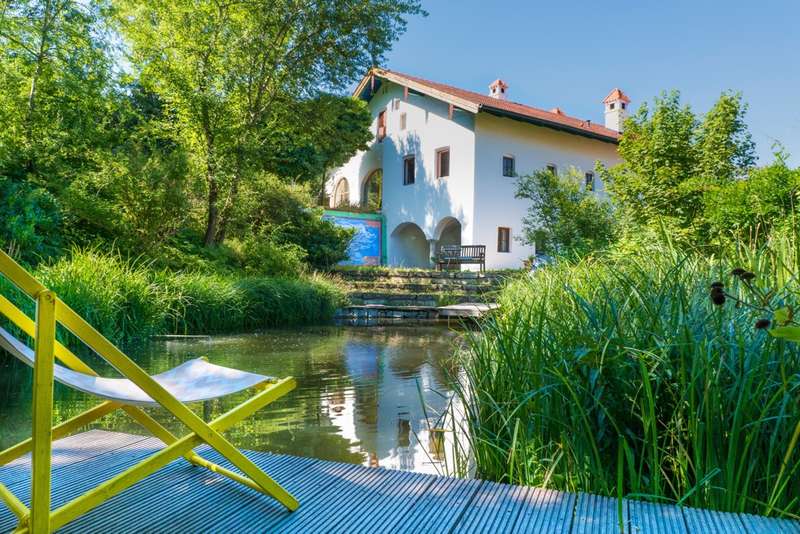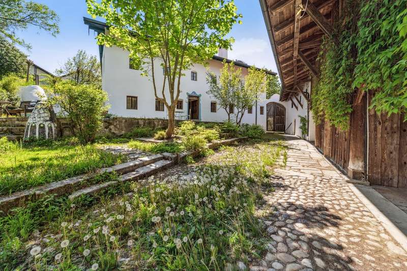 This listed baroque residence with extensive grounds is located within the historic town center and just a few steps away from the southern-style market square - in an idyllic location. The property is situated on an island with a surrounding artificial stream fed by the Wanklbach. This unique location promises absolute privacy in a secluded setting in the middle of the village center - completely untouched by the hustle and bustle of urban life. The picturesque main building of the former Bruckmühle dating from 1767 in the style of a baroque manor house was completely renovated back in the 1990s and most recently extensively and lovingly modernized in 2016. Today, a successful combination of historical splendor and modern living comfort awaits you in the multifaceted walls. On two lovingly renovated floors, residents will find plenty of space for living, well-being and self-fulfilment on over 380 m² of living space. The first floor impresses above all with its cross vaults and Bohemian vaults, but also with a variety of special rooms and retreats. Whether it's the eat-in kitchen with luxury fittings, the atmospheric parlor with tiled stove, the spacious split-level living room with fireplace or the cosy lounge with bay window, each room has its very own character and reveals its very own purpose. The upper floor offers no fewer highlights and impresses with a total of three high-quality, modern bathrooms, stately bedrooms and study rooms and a separate granny apartment, which exudes its very own charm with large arched windows. The top floor also offers exciting expansion potential for a partial area. But it's not just the top floor that has considerable potential; the longhouse, the former farmhouse along the stream, also offers around 100 m² of further expansion potential for a wide variety of uses and space for a studio with a large glass front, for example. The technical building infrastructure such as water, sewage, electricity and heating has already been prepared. The garage, former horse boxes and an outdoor seating area are currently located there. The long house and the residential building are connected by the arched gateway with a restored wooden gate over 100 years old and 5 meters high, which provides access to the outside area and the idyllic garden. Whether you choose access via the archway, the various points in the house or via the imposing outdoor seating area, the garden offers views from all sides and on two levels and, above all, maximum privacy. The central point in the garden is undoubtedly the elaborate, high-quality swimming pond with a depth of up to 3.5 meters and exquisite botanical planting. Here you can jump into the water from the jetty, enjoy a wonderful view of the house and garden from the deckchair on the wooden deck or simply let your mind wander while watching the koi. These and other atmospheric oases in the garden round off an exquisite living ambience on this stately property. The symbiosis of urbanity and maximum privacy, paired with superior living comfort and plenty of space in a historic setting leaves virtually nothing to be desired! Come and see for yourself! We would be delighted to introduce you to this dream retreat! As a first step, please send us a written inquiry (real estate portal, homepage, e-mail) with your full contact details. We look forward to your inquiry! ...and here are a few more impressions of the property: https://youtu.be/hDTbViBUSDg