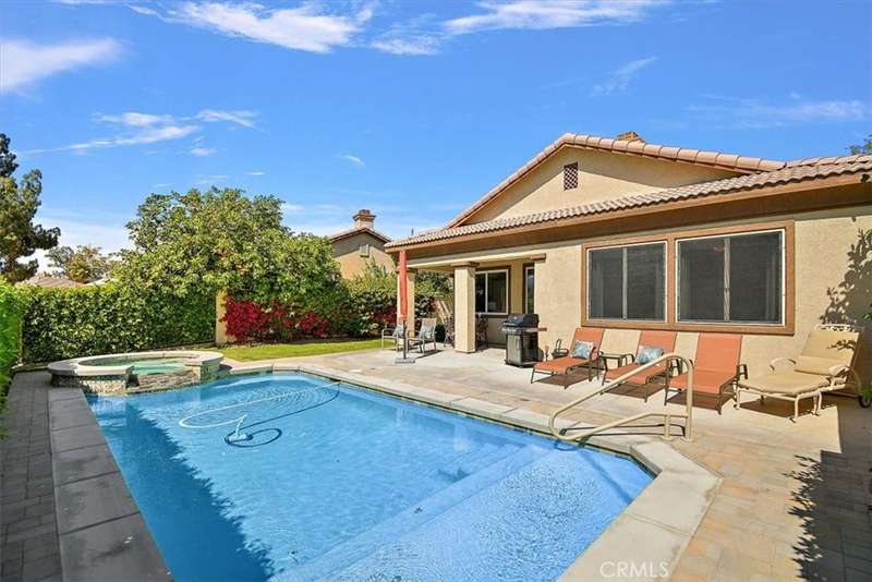 Luxurious Desert Retreat with Private Pool in Indian Palms Country Club! Discover this beautifully upgraded 2-bedroom, 2-bath home, ideal as a serene desert getaway or a lucrative short-term rental investment. Located in the prestigious Indian Palms Country Club, this home boasts a private swimming pool and direct golf course access — the ultimate in resort-style living. Step inside to find a spacious layout featuring a large kitchen with granite countertops, stainless steel appliances, and a central island, perfect for entertaining. The adjacent great room includes a cozy fireplace and is adorned with designer furnishings, artwork, and stylish accessories throughout. The primary suite offers direct access to the pool deck, with stunning golf course views. The ensuite bathroom includes a double vanity, walk-in shower, and generous space for relaxation. A second bedroom and full bath offer ample comfort for guests or family. Outdoor living is a dream with a covered patio, newly built private pool, and manicured landscaping (maintained by HOA). Additional features include an inside laundry area, a 2-car garage plus golf cart parking, and recent upgrades such as fresh paint and new carpeting. HOA membership includes access to the Indian Palms Lifestyle Center — featuring a resort-style pool area, tennis and pickleball courts, and a full-service fitness center. Also within the gates is a 27-hole golf course, complete with a driving range, practice greens, and clubhouse. Don’t miss your opportunity to own this luxurious and turnkey home in one of the desert’s premier communities!