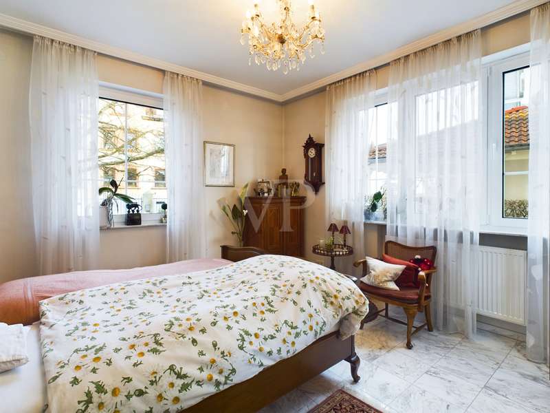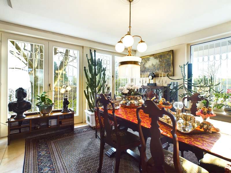 This impressive villa from 1955 stands on a spacious 1,420 m² plot and combines historical charm with modern living comfort. The approx. 232 m² of living space is divided into three areas and offers a wide range of design options for individual living concepts. The first floor is currently occupied by the owner, who has the right to live here for life and would like to stay for a few more years. The upper floor, on the other hand, is currently rented out. The rental income generated here is of course available to the new owner. Alternatively, the rooms can of course also be occupied by the new owner. Whichever option you choose, you not only get one of the most beautiful properties in Aschaffenburg, but also a contemporary witness who can tell you everything you need to know about its past. With eight rooms, including five spacious bedrooms, and two bathrooms, the property is ideal for families or prestigious living. Large windows flood the rooms with natural light and create an inviting atmosphere. The spacious living area allows for flexible use - whether as a stylish living area, library or hobby room. A large terrace and well-kept outdoor areas invite you to relax outdoors, while the property offers plenty of scope for design. The last modernization in 1995 brought the villa up to a contemporary standard and preserved the solid building fabric. Are you interested in finding out more about this promising investment with lots of potential and charm? The von Poll Team Aschaffenburg looks forward to hearing from you!