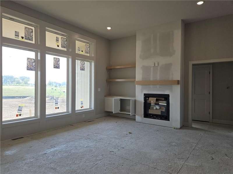 Lot 44 Villa - The Lexington by Pfannes Homes! GOLF COURSE LIVING in this open Reverse plan. FINISHED PHOTOS OF A PREVIOUS MODEL. Estimated completion October 2025 - just finished paint, ready for tile! Spacious Great Room with fireplace. Kitchen with sizeable Island, walk in pantry. Breakfast Area with wainscoting leads to the covered patio. Main floor Primary Bedroom with beautiful feature wall. Primary Bath Suite includes standalone tub and walk-in shower. Main floor 2nd Bedroom and 2nd Bathroom. Laundry Room has access off the Primary Bedroom closet. Large finished Family Room in the lower level. 3rd and 4th Bedrooms and 3rd full bath. Plenty of storage room. 3 Car Garage with tandem area on the 3rd garage bay perfect for the golf cart. End of the cul-de-sac! Just 10 minutes to the Legends shopping and entertainment and 30 minutes to the airport, Falcon Lakes is conveniently located on K-7 for easy highway access. Acclaimed Basehor-Linwood Schools. Monthly HOA dues provide lawn maintenance including weed and feed and sprinkler turn on and off as well as snow removal over 2 inches. Neighborhood Restaurant at the golf course club house!