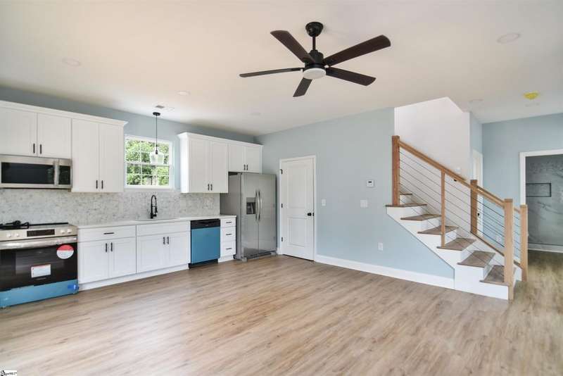 HOME SWEET HOME!! Come home to 6 Guess Street! Walk, run, or bike to downtown Greenville from this BRAND new, adorable 3BR/2BA! Just a few minutes to the WEST END area, this open floor plan gem features wonderful upgrades such as hardiboard exterior, quartz countertops, SS appliances including frig, a lovely backsplash, LVP flooring, upscale closet systems, and more! The primary bedroom can be on the main level or the upstairs. You pick! The deck provides great space for gatherings! Hurry over to 6 Guess Street for this amazing opportunity!
