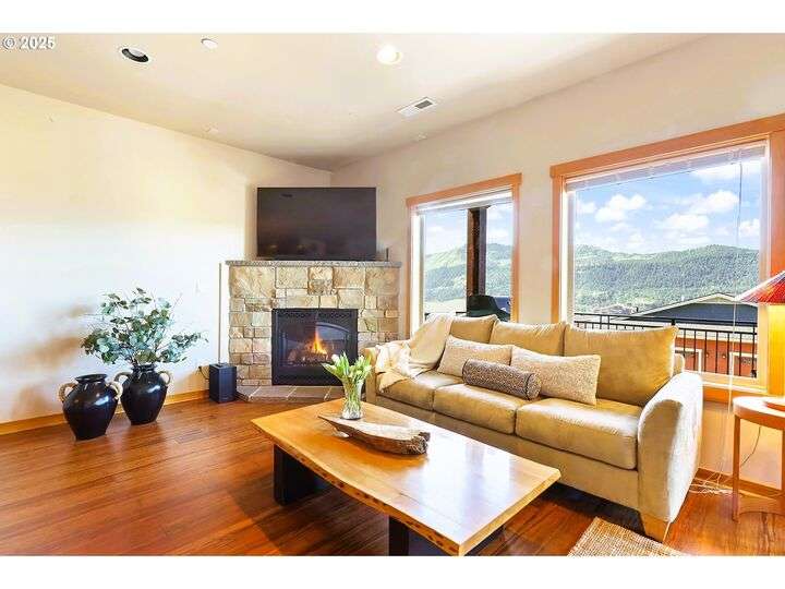 Open this Saturday(7.19/ 11-1pm) Stunning Columbia River View Turnkey-Townhome, Fully Furnished, Custom-Built with Elevator! Experience luxury living in the heart of downtown White Salmon with this beautifully designed, move-in-ready townhome boasting 2,760 sq ft. featuring a fantastic great room, 4 spacious bedrooms (3 of which are suites) and 3 elegant bathrooms. A private elevator services all 3 levels, offering ultimate convenience & accessibility. This stylish home is located just steps from downtown’s vibrant restaurants, bakery, shops, banks, and is perfect as a full-time residence or a luxurious vacation getaway. Best of all, it’s being offered fully furnished, including all high-end furniture, appliances & W/D! Truly turnkey! Step inside to discover gorgeous exotic bamboo flooring throughout all 3 levels. The slate-tiled entry level includes a full bedroom suite, equipment/storage room, additional closet space, and direct access to the oversized 2-car garage with hanging storage racks. Take the elevator(or stairs! to the main level, where you’ll find a stylish, open-concept great room with a gourmet granite kitchen, large entertaining bar, gas fireplace, and sliding doors that open to a spacious deck with a gas bbq hookup – perfect for grilling anytime of the year! The main level also has two beautifully appointed bedrooms, a dual-entry full bathroom with double sinks, Huge2ndW-In Pantry, laundry room with washer/dryer, utility sink & counter & storage. The upper level offers an office/den and the vaulted third suite, currently being used as a bonus TV/entertaining room. This level also features an oversized walk-in closet and a private viewing deck, where you can take in spectacular views of the Columbia River, Gorge mountains, downtown Hood River & bridge and a great spot to watch the 4th of July fireworks! 2-Car Oversized Garage too! An Amazing opportunity to own a turnkey view home! A truly special place to call home—move-in ready and waiting for you!