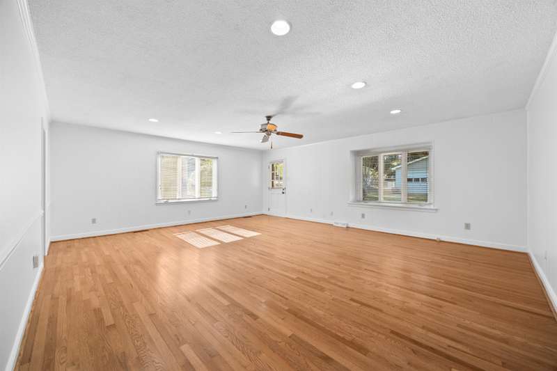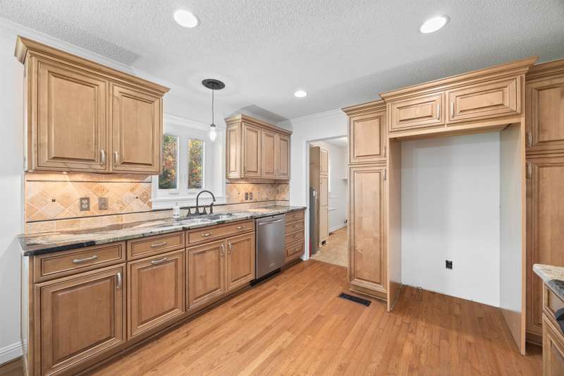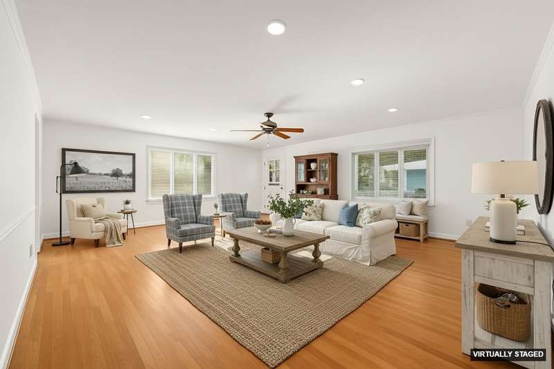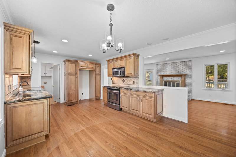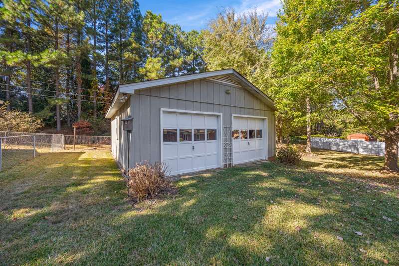 Charming 3-bedroom brick and vinyl ranch featuring an oversized 2 car detached garage for parking, storage or workshop. Beautiful hardwood floors flow through the main living areas, kitchen and dining. The interior has been freshly painted and the bedrooms feature brand NEW carpet. Enjoy the cozy den with a brick fireplace, open to the spacious kitchen, previously updated with granite counters and custom cabinetry. A large great room offers the perfect setting for gatherings and entertaining. Step outside to a deck overlooking a picturesque fenced yard with mature trees - an inviting space to relax and unwind. Heatpump new in 2023.