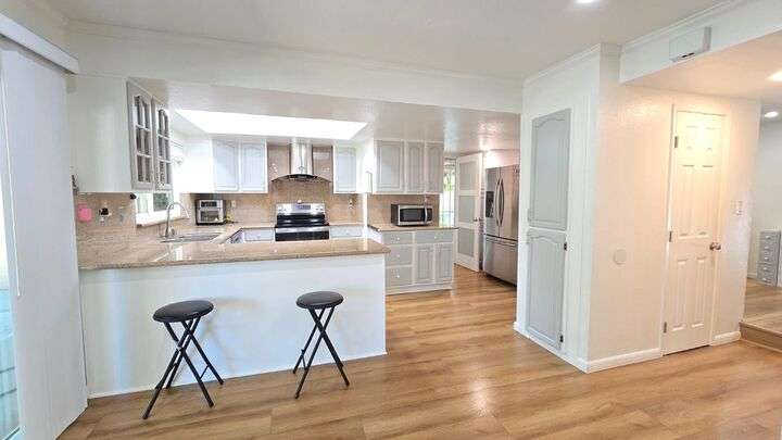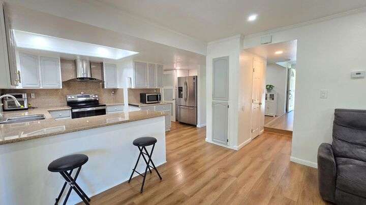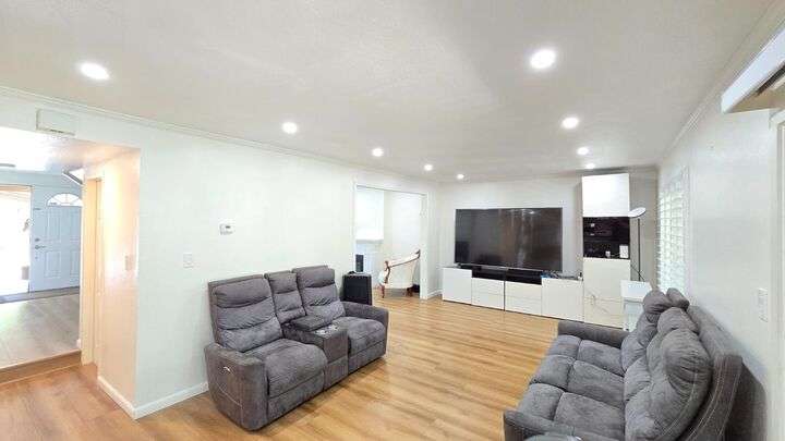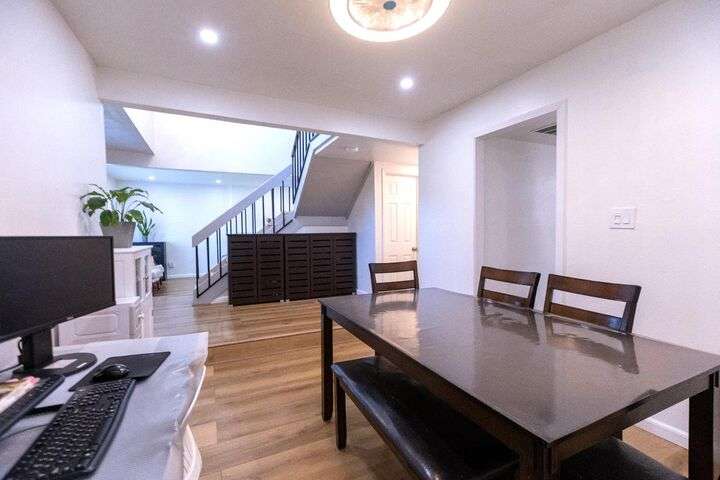 Great memories have been made here, and even greater ones are waiting for you in this beautifully updated 4-bedroom, 2.5-bath home. With over 6,500 sq ft of lot space, fully paid solar, and a thoughtful blend of modern upgrades and timeless charm, this home is move-in ready to host your next season of life. Step inside to find brand new flooring and fresh paint, illuminated by new recessed lighting that brightens every corner. The kitchen is a chef's delight, featuring a brand-new oven and stovetop with built-in Air Fryer function, ample storage, and views that flow seamlessly into the covered patioperfect for indoor-outdoor entertaining. 2nd floor hall bath have been newly refreshed with modern bowl sink and auto-defogging, color-changing vanity mirror that bring a touch of luxury to your daily routine. A cozy electric fireplace creates the perfect ambiance, offering warmth and aesthetic appeal without overshadowing the Bay Area's perfect weather. Gather in the expansive back family room for game nights, family bonding, or peaceful rest, or enjoy the dedicated formal dining room that welcomes both lively dinners and quiet meals. Outdoors, entertain under the covered patio, indulge your inner horticulturist in a garden filled with mature fruit trees. Possible RV parking!