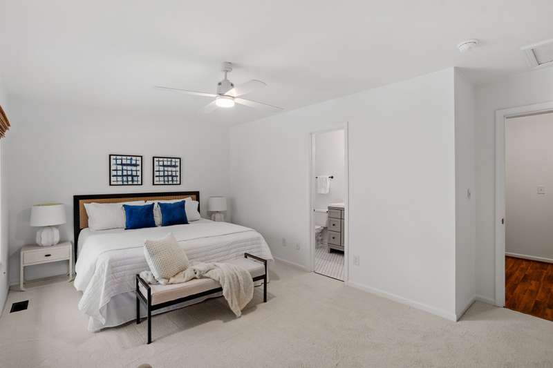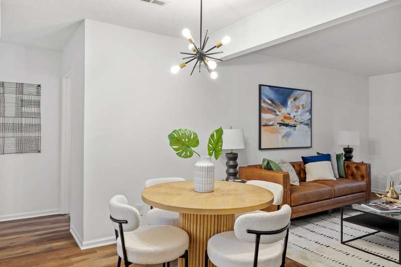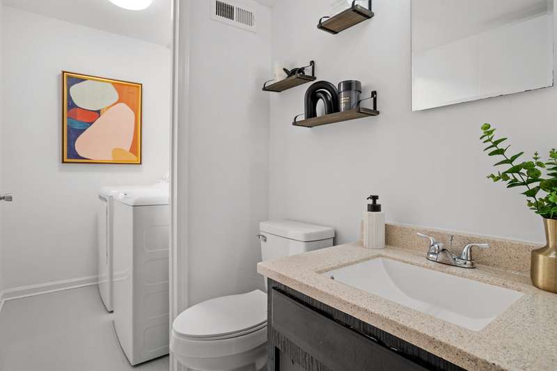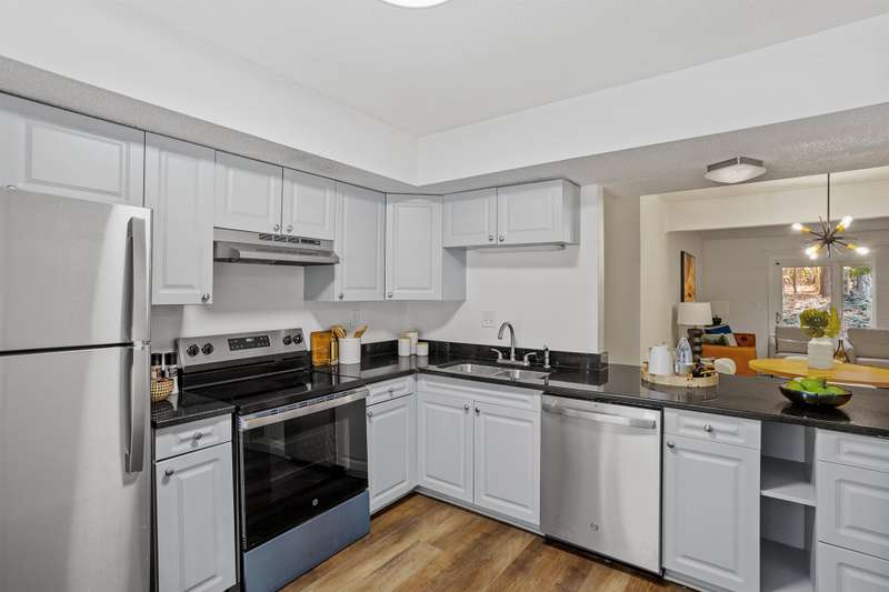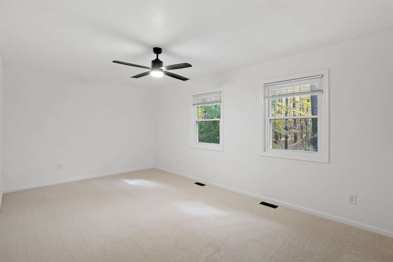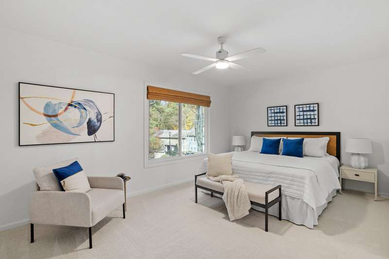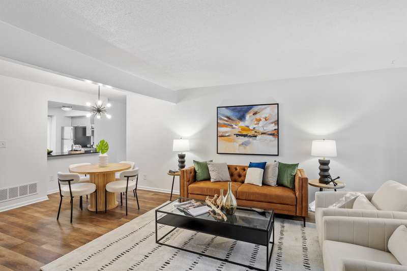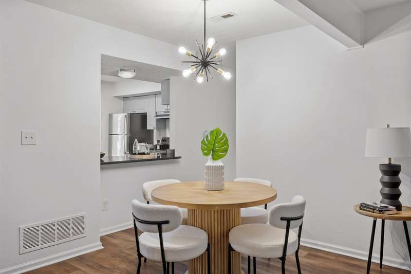 This MOVE-IN READY townhome with 2 bedrooms and 2.5 baths blends modern updates with midcentury character. A striking floating staircase brings your midcentury modern dreams to life, complemented by fresh paint (2025), new carpet in the bedrooms (2025), and brand new stainless steel kitchen appliances including refrigerator, dishwasher, range, and vent hood. Downstairs, enjoy beautiful LVP flooring, gorgeous granite countertops, and a decorative fireplace. Refrigerator, washer, and dryer convey for your convenience. The HOA covers the roof (updated 2016), exterior maintenance, and water service, plus access to community pool amenities. Dixon Drive Park is just a few steps away. Investor-friendly HOA allows rentals, making this an excellent opportunity for primary residence and investors alike. With well-maintained grounds, updated exterior paint, and a prime Raleigh location only 10 minutes from North Hills and Crabtree Valley Mall, this townhome offers convenient, stylish living in Northclift Villages.