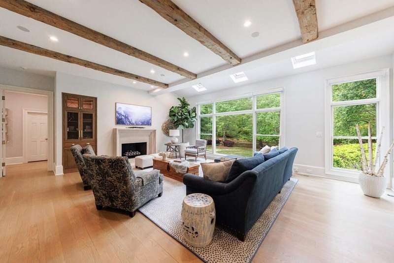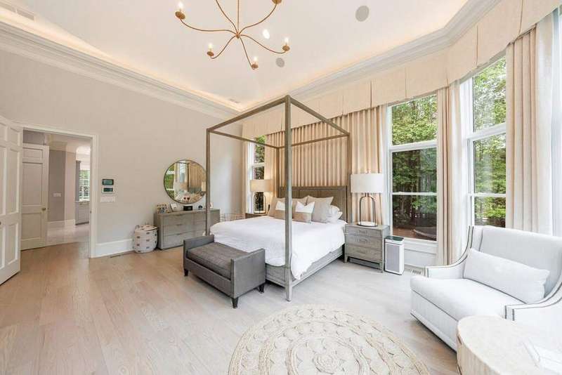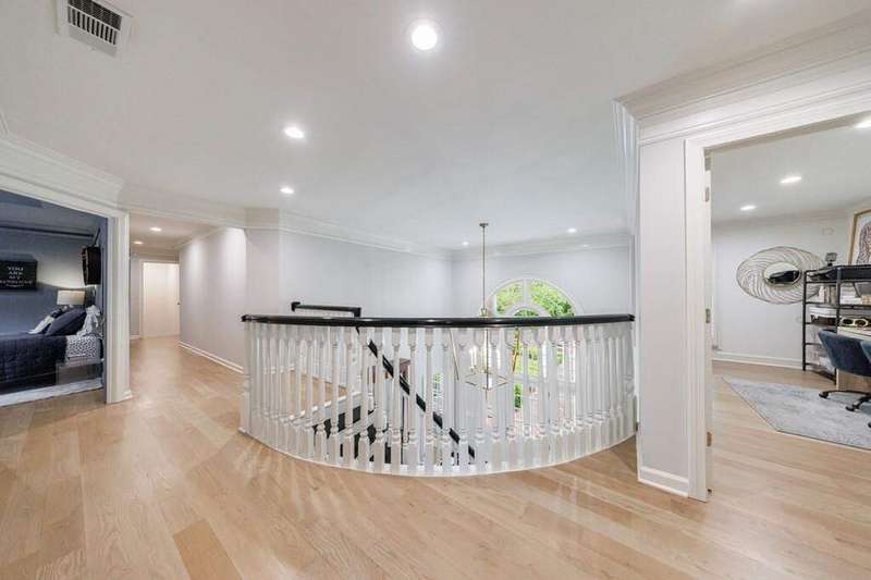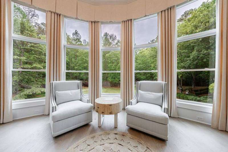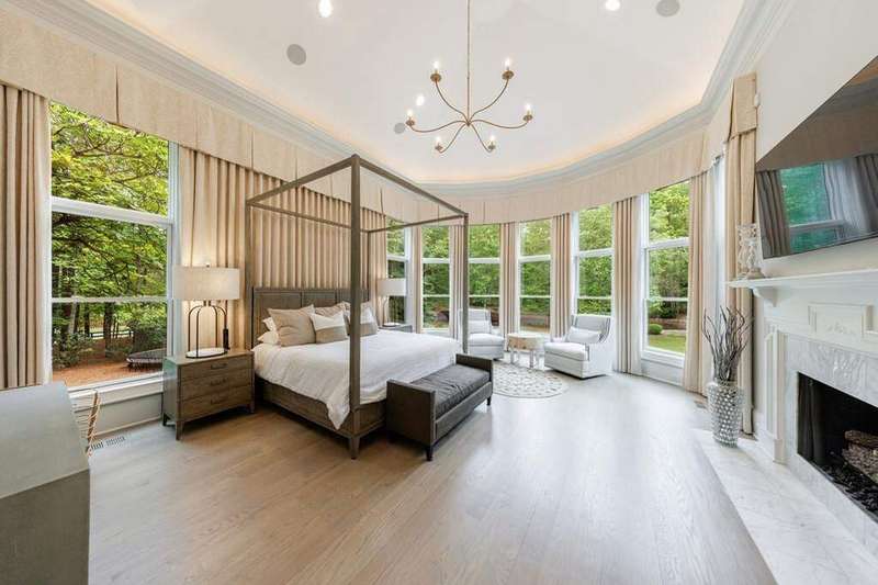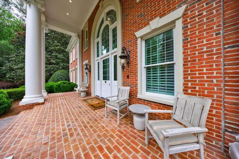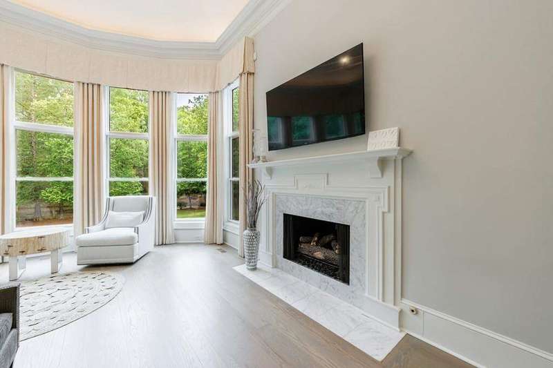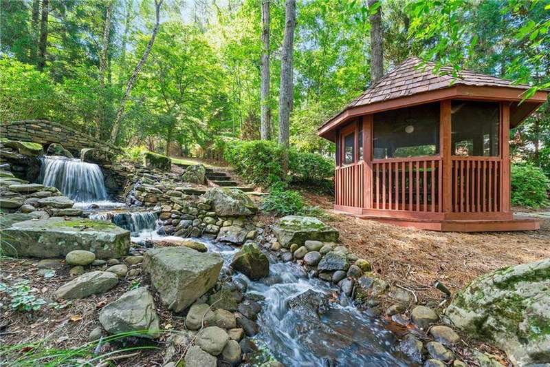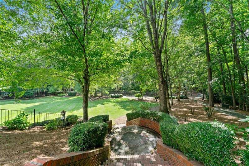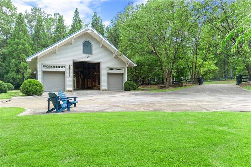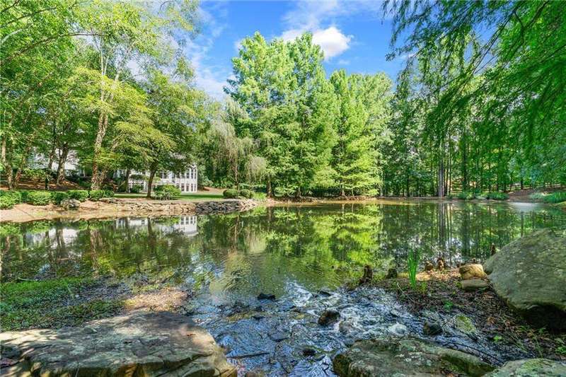 Stunning property in sought-after Cameron Crest Farms. This estate is truly one-of a kind on 5+/ acres with walking trail, pond, privacy among the trees and woods, lake front, gazebo and barn. The gated entrance leads to the tree line driveway and parking pad. Front porch opens to grand entrance foyer with stone flooring and spiral staircase. Large living room overlooks the park-like backyard. The light filled kitchen in the back of the house offers an oversized island, stone counters, stainless steel appliances and opens to the breakfast area with fireplace. The kitchen is also complete with a large walk-in pantry. Main level has formal dining room and family room off of the kitchen as well. Sought-after primary suite on main overlooks the backyard with floor to ceiling windows and is complete with a fireside sitting area. Luxurious primary suite has double vanities, separate tub and shower. Spacious walk-in closet has island and laundry area. The grand staircase leads to 5 bedrooms, 4 full bathrooms and several bonus rooms for dual offices and/or playroom. Upper level includes laundry room with sink and a hidden space above the garage that could be used as a bedroom, au-pair suite, office or man cave, it also offers a large walk-in closet and full bathroom. The grounds are absolutely breath-taking for kids, pets and entertaining. Close proximity to all that Johns Creek has to offer but the farm-like setting is so special, private and serene.