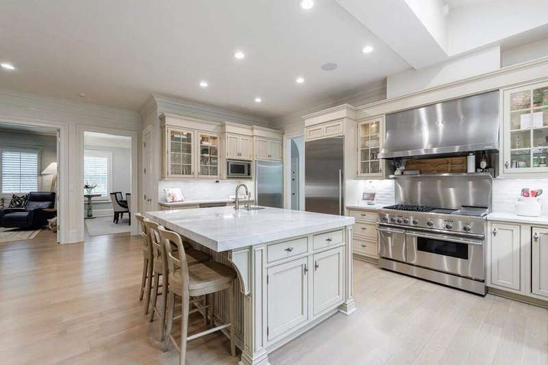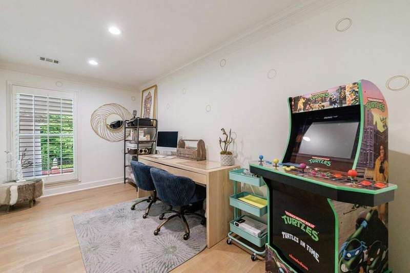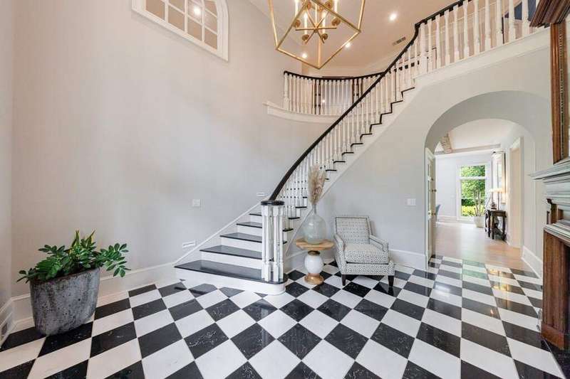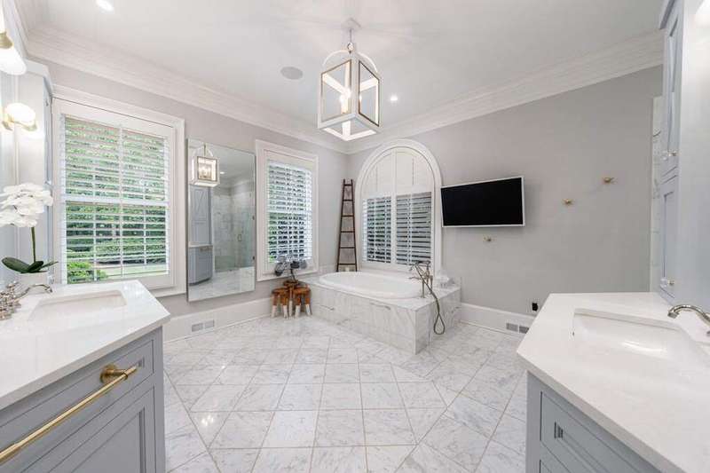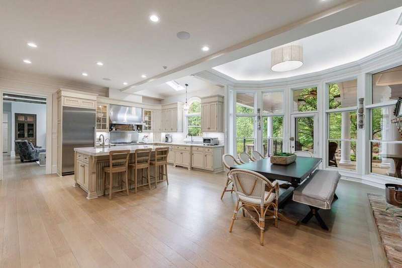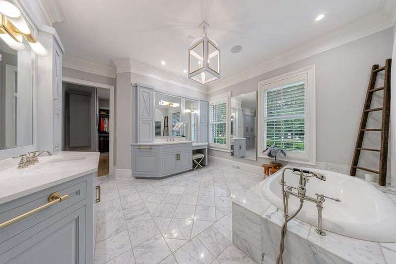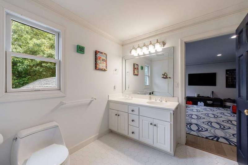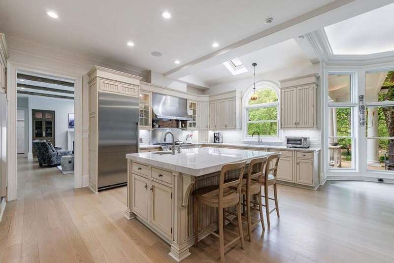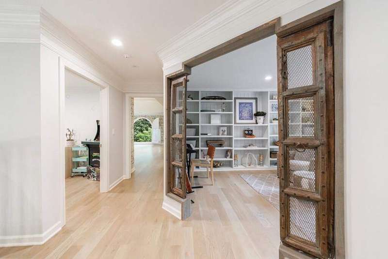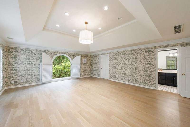 Stunning property in sought-after Cameron Crest Farms. This estate is truly one-of a kind on 5+/ acres with walking trail, pond, privacy among the trees and woods, lake front, gazebo and barn. The gated entrance leads to the tree line driveway and parking pad. Front porch opens to grand entrance foyer with stone flooring and spiral staircase. Large living room overlooks the park-like backyard. The light filled kitchen in the back of the house offers an oversized island, stone counters, stainless steel appliances and opens to the breakfast area with fireplace. The kitchen is also complete with a large walk-in pantry. Main level has formal dining room and family room off of the kitchen as well. Sought-after primary suite on main overlooks the backyard with floor to ceiling windows and is complete with a fireside sitting area. Luxurious primary suite has double vanities, separate tub and shower. Spacious walk-in closet has island and laundry area. The grand staircase leads to 5 bedrooms, 4 full bathrooms and several bonus rooms for dual offices and/or playroom. Upper level includes laundry room with sink and a hidden space above the garage that could be used as a bedroom, au-pair suite, office or man cave, it also offers a large walk-in closet and full bathroom. The grounds are absolutely breath-taking for kids, pets and entertaining. Close proximity to all that Johns Creek has to offer but the farm-like setting is so special, private and serene.