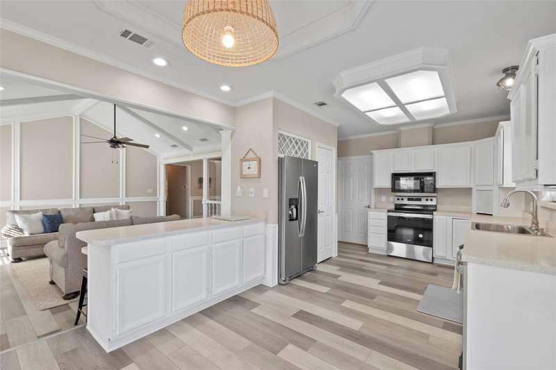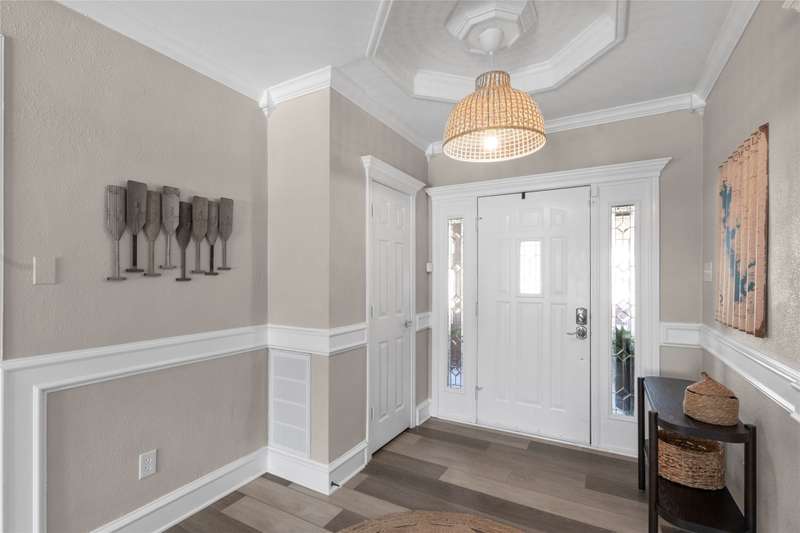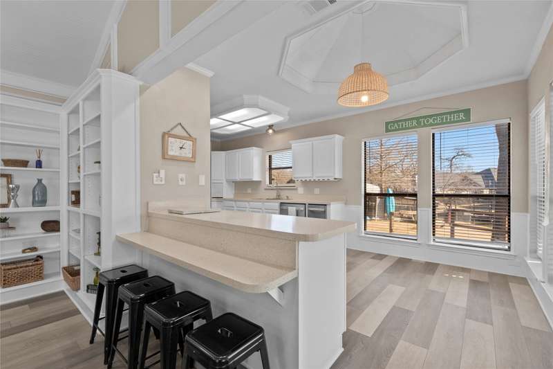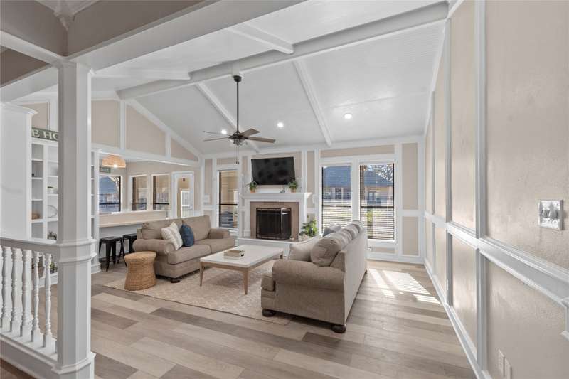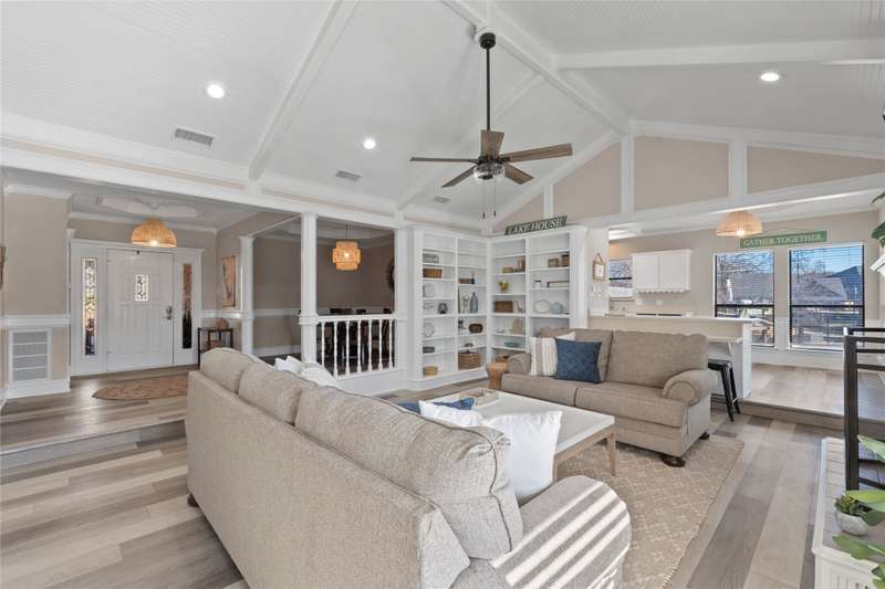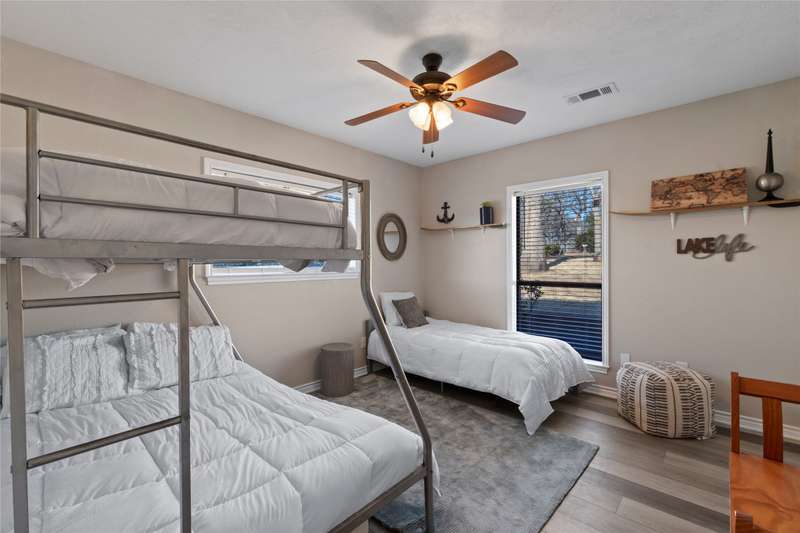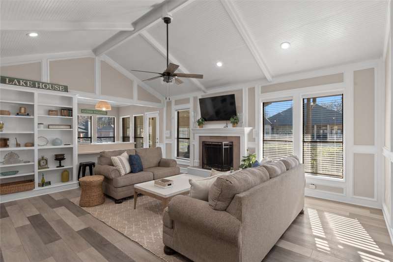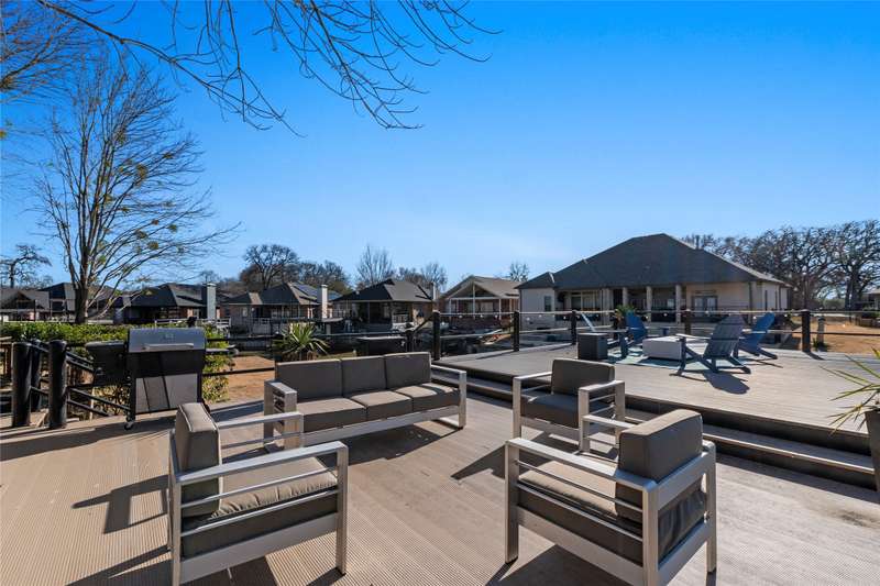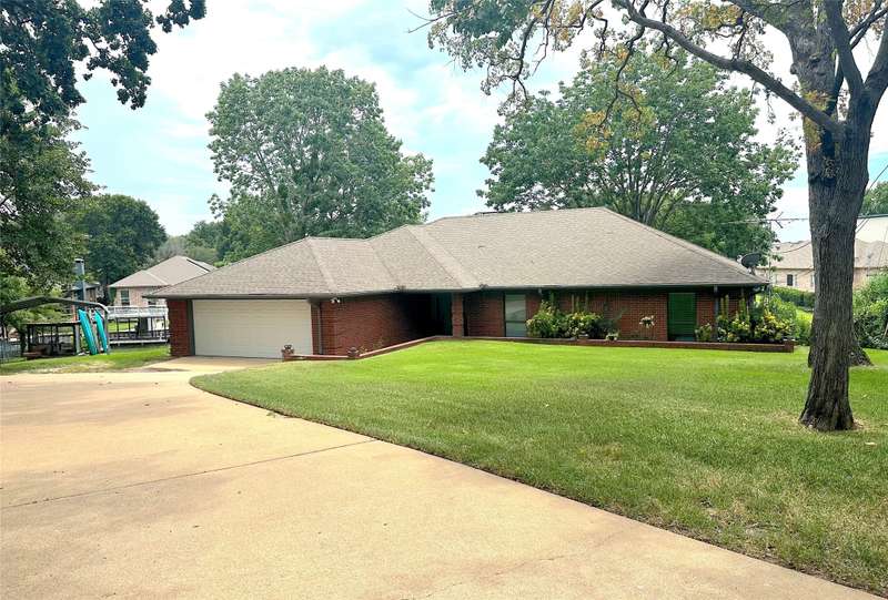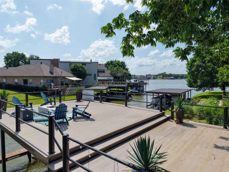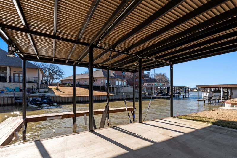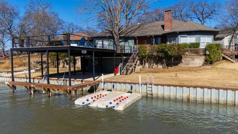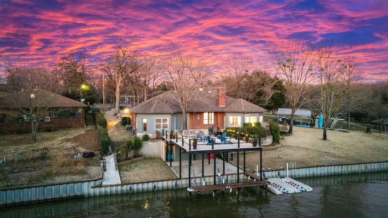 Situated on a large lot with 191 feet of prime waterfront, this lake house offers the perfect blend of comfort and scenic beauty. Inside, the open-concept living area boasts vaulted wood ceilings with exposed beams, creating a warm, inviting atmosphere. The breakfast nook offers beautiful water views and seamlessly connects to a cozy sitting area, perfect for enjoying the serene lakefront. The spacious primary suite features high ceilings and its own sitting area, all with breathtaking water views. Step outside to a multi-level deck with aluminum decking, ideal for entertaining or simply relaxing while taking in the lake view. The property also includes a single-slip boathouse and two personal watercraft pods. Recent upgrades include a new retaining wall and boathouse, both installed in 2022. Whether you're seeking a peaceful retreat or a place to entertain guests, this lakefront home provides the perfect setting. Seller converted sunrooms into sitting areas and or lounging areas with split HVAC units in both rooms. Furnishings negotiable. Seller will provide list of exclusions.